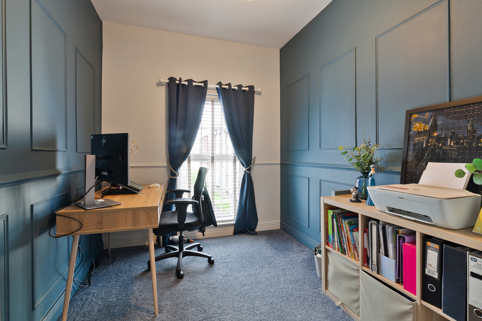 From the moment you step into the welcoming entrance hall, the quality of finish and attention to detail is immediately evident. To the front of the property, the elegant lounge features a charming open fire and bespoke built-in shelving, creating a warm and stylish retreat.