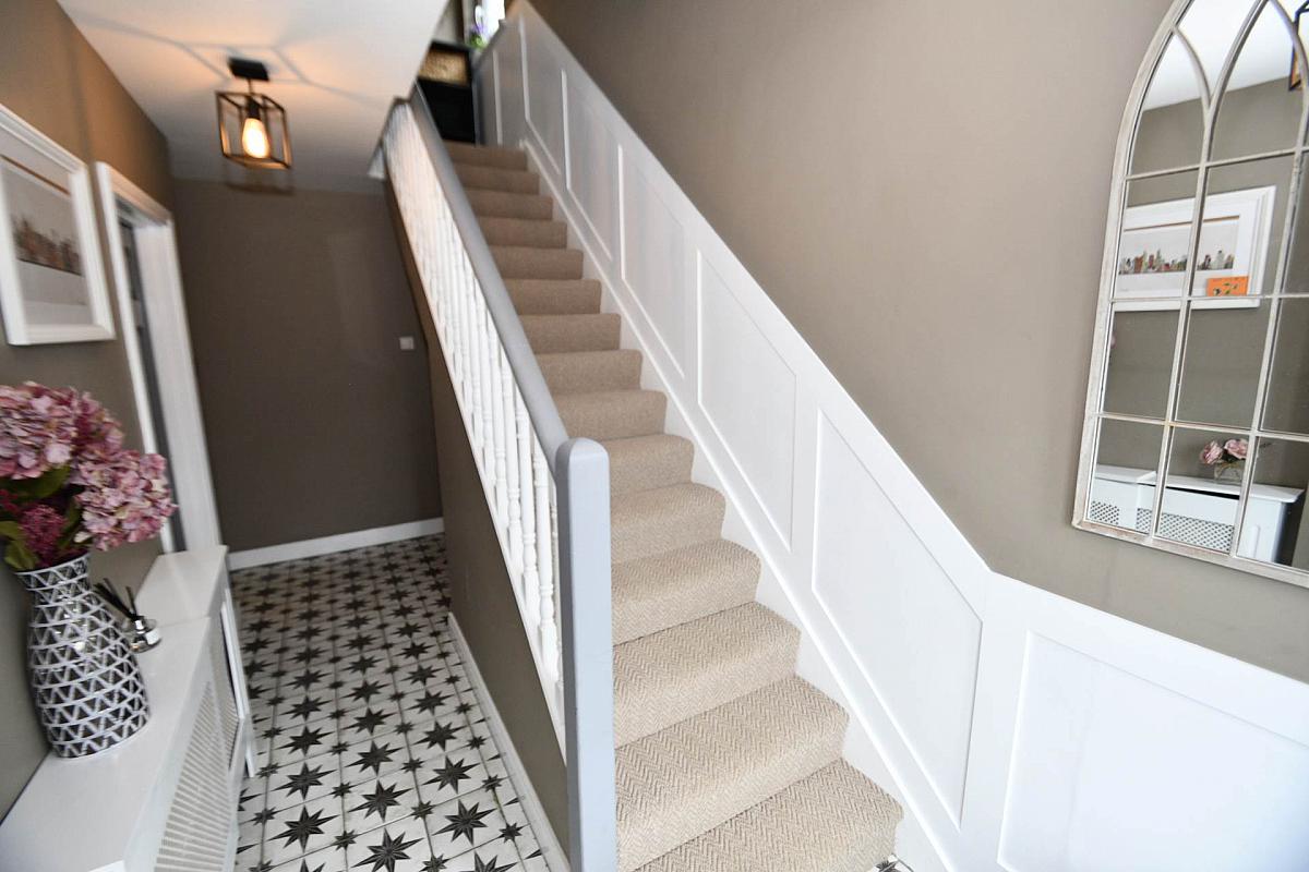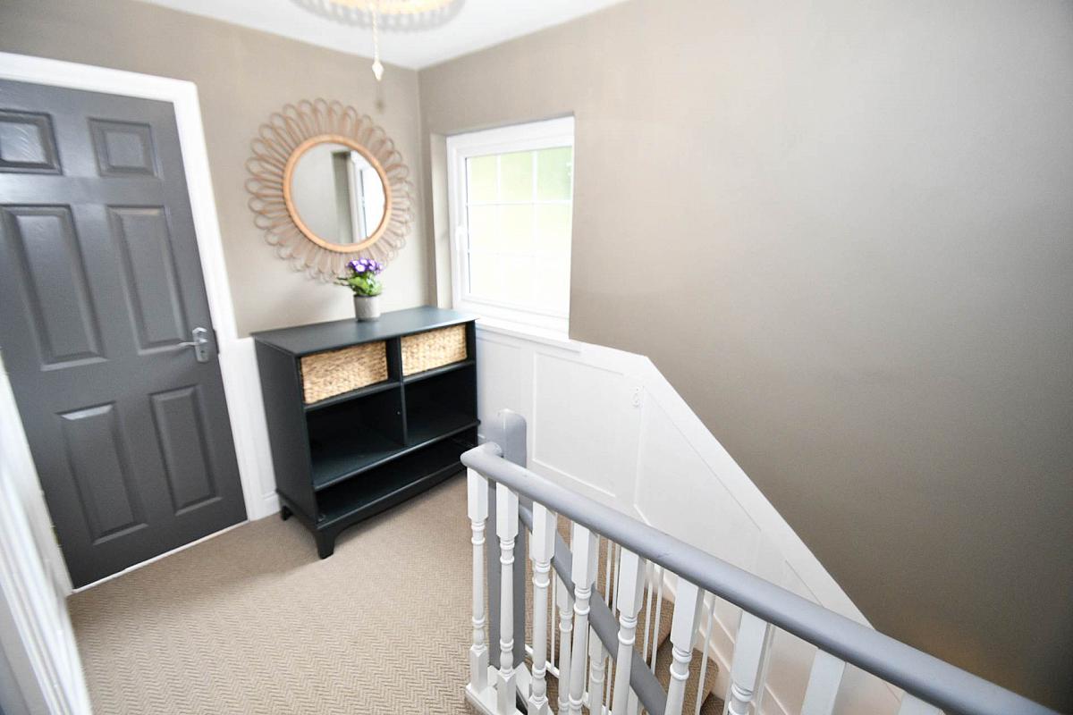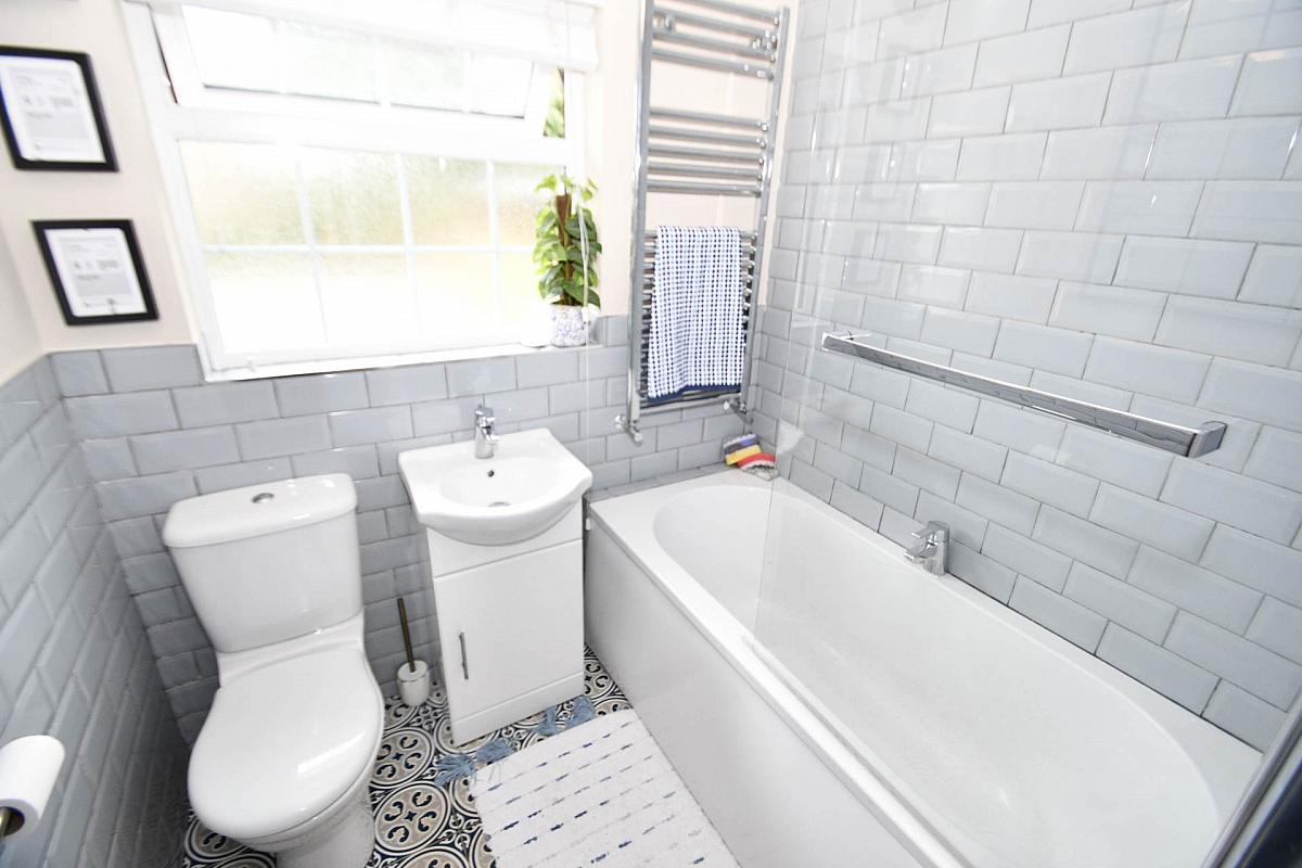 Upstairs, you will find three generously sized bedrooms, each offering ample space for storage and natural light. The bathroom is well appointed with a modern suite, including a panelled bath.