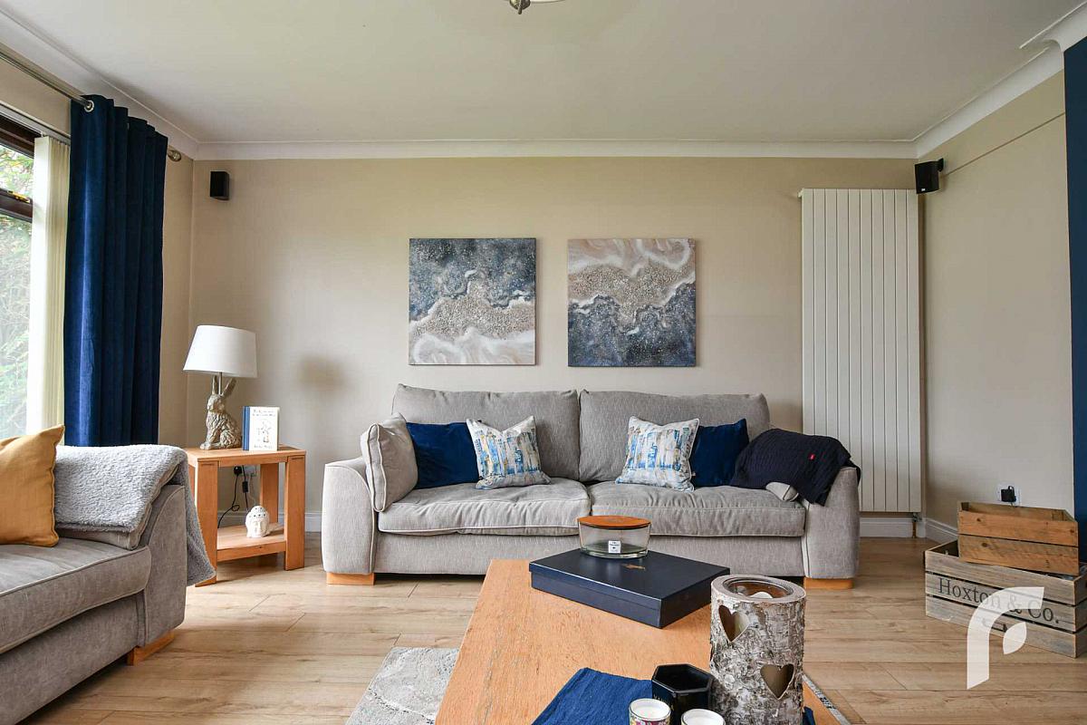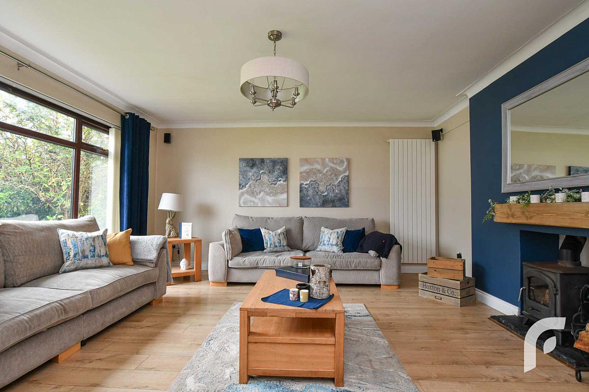 Living Room - 16'7' x 15'7' - Fuel burning stove, panel radiator