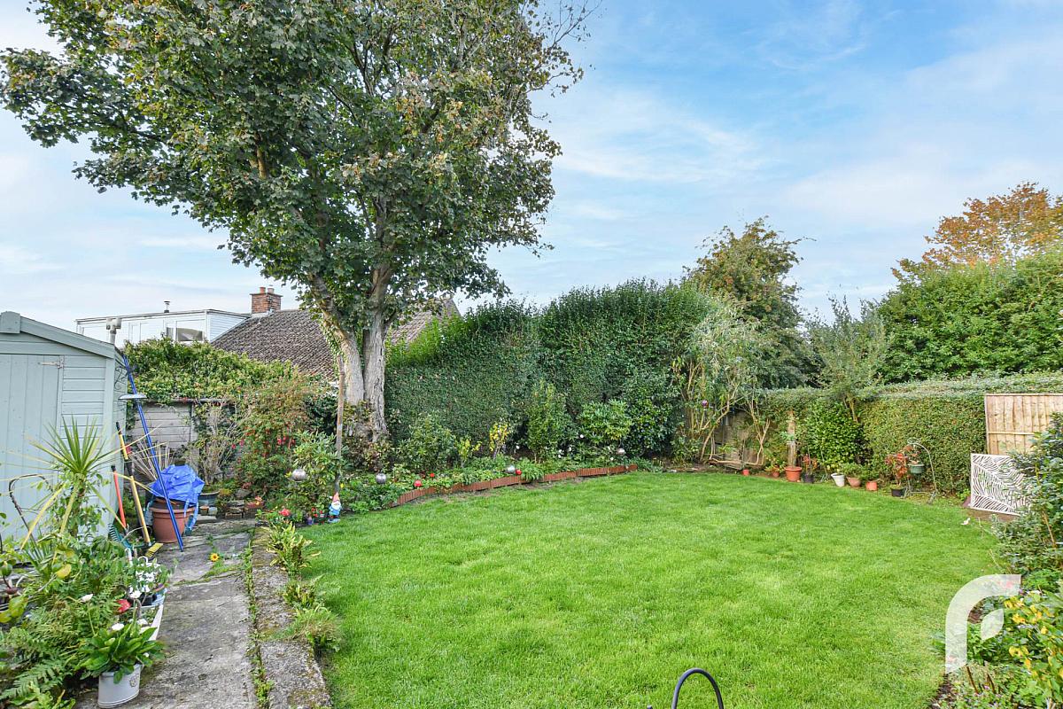 Uniquely large rear garden finished in lawn with foliage/shrubbery