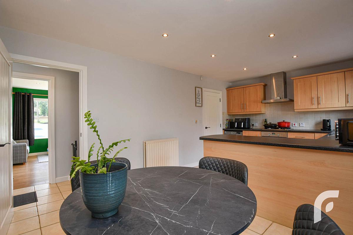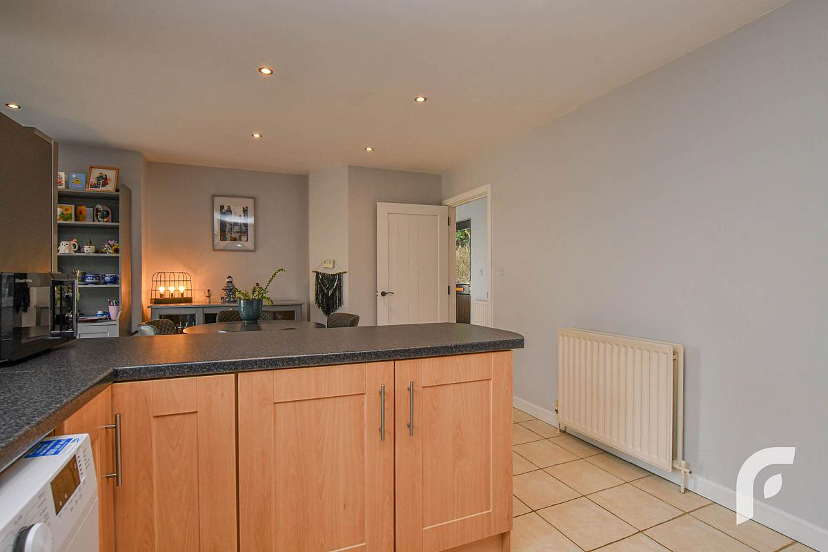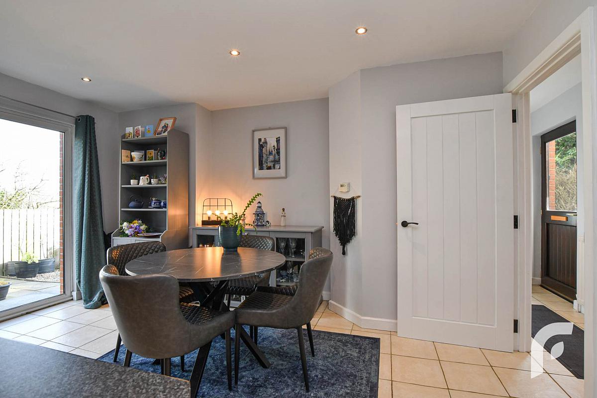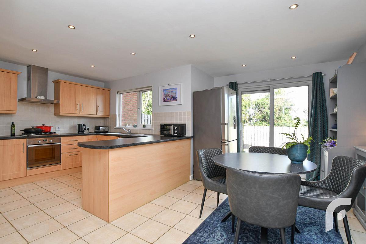 Open plan kitchen/dining area with patio doors to rear garden