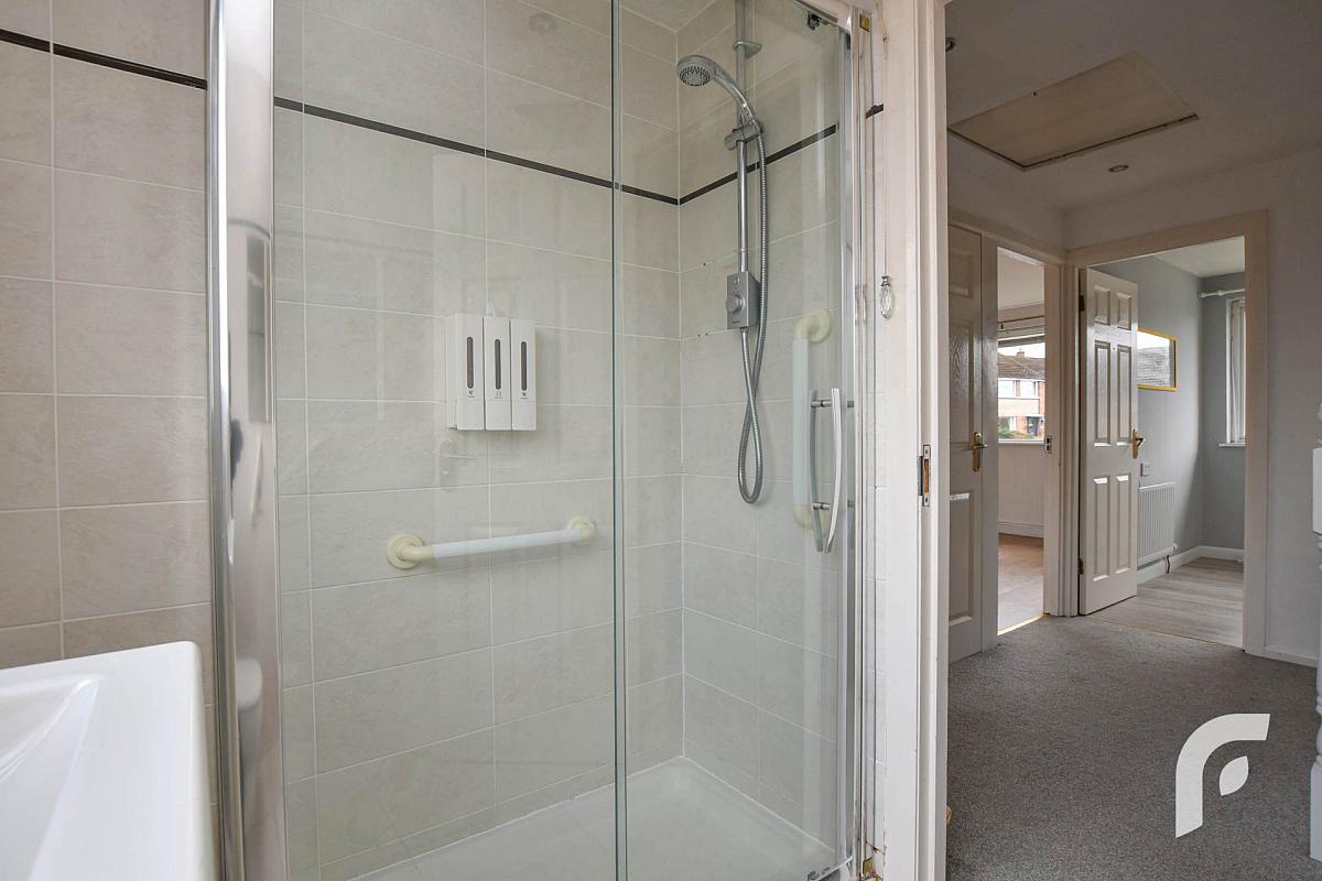 Bathroom - 7'5' x 5'3' - modern with three piece white suite incl. walk-in shower.