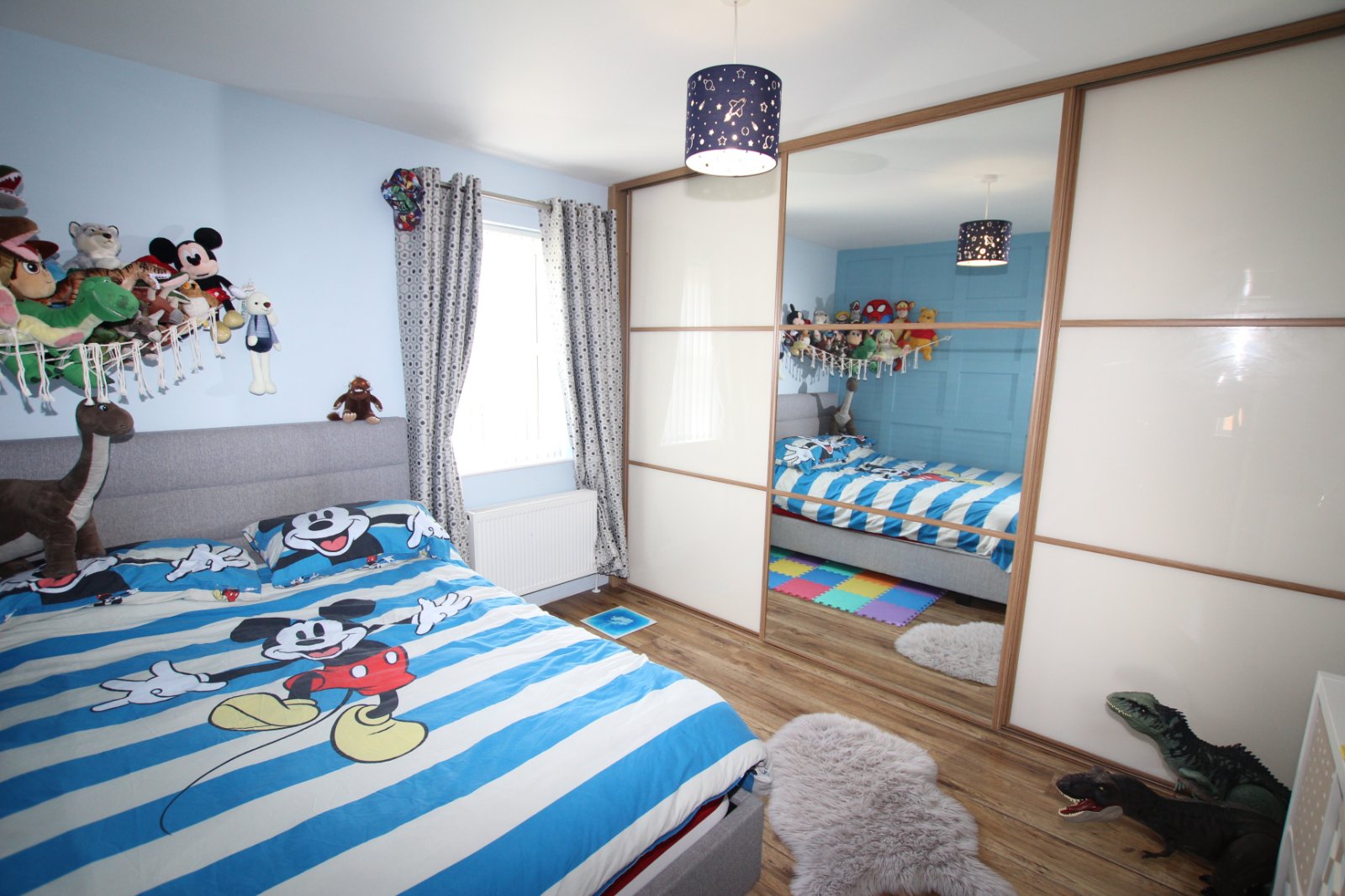 Rear aspect double bedroom, laminate wooden flooring and mirrored sliderobes.
