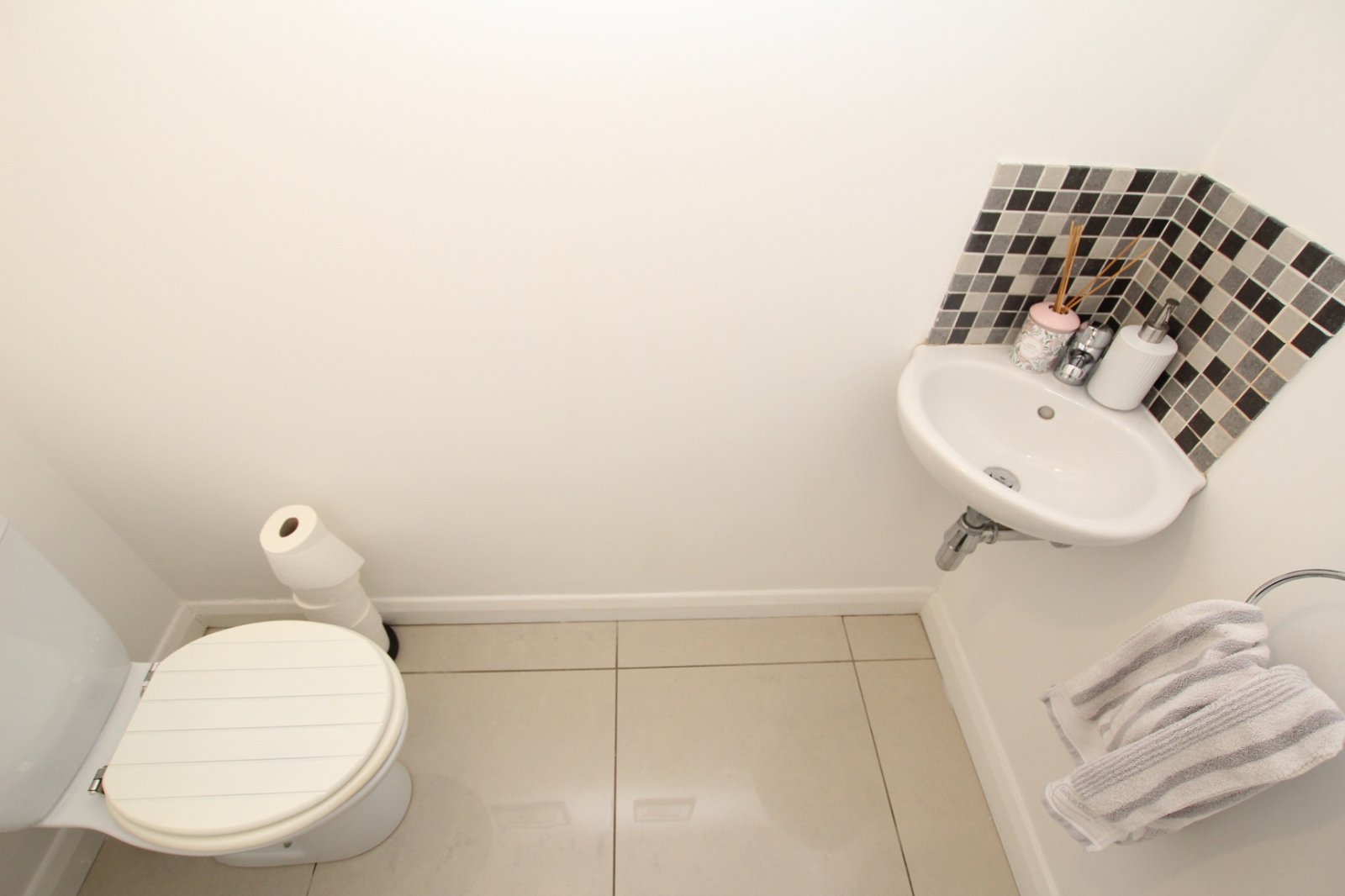 Downstairs dual flush WC and wash hand basin. Tiled flooring.