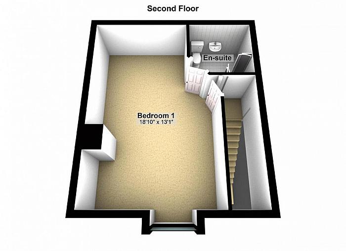 BEDROOM (1) 18' 10" x 13' 1" (5.74m x 3.99m) Solid wood flooring, Velux window, eave storage