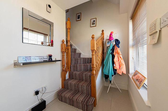 LOUNGE 15' 8" x 13' 5" (4.78m x 4.09m) Polished tiled floor, downlighters, feature fireplace, gas fire, understairs storage