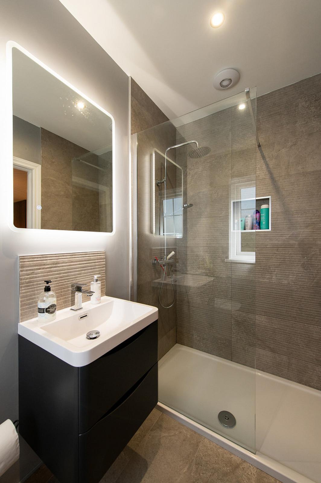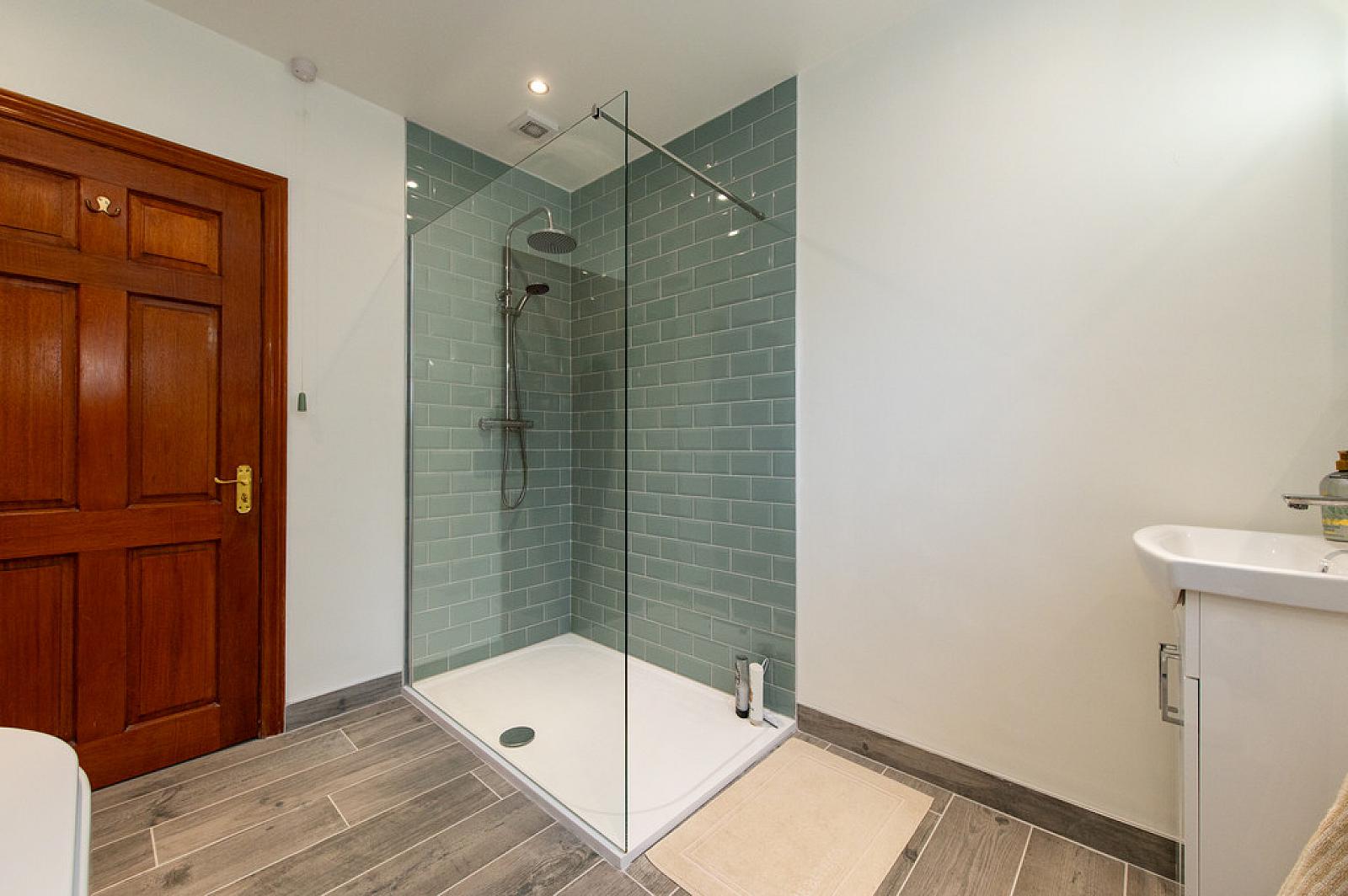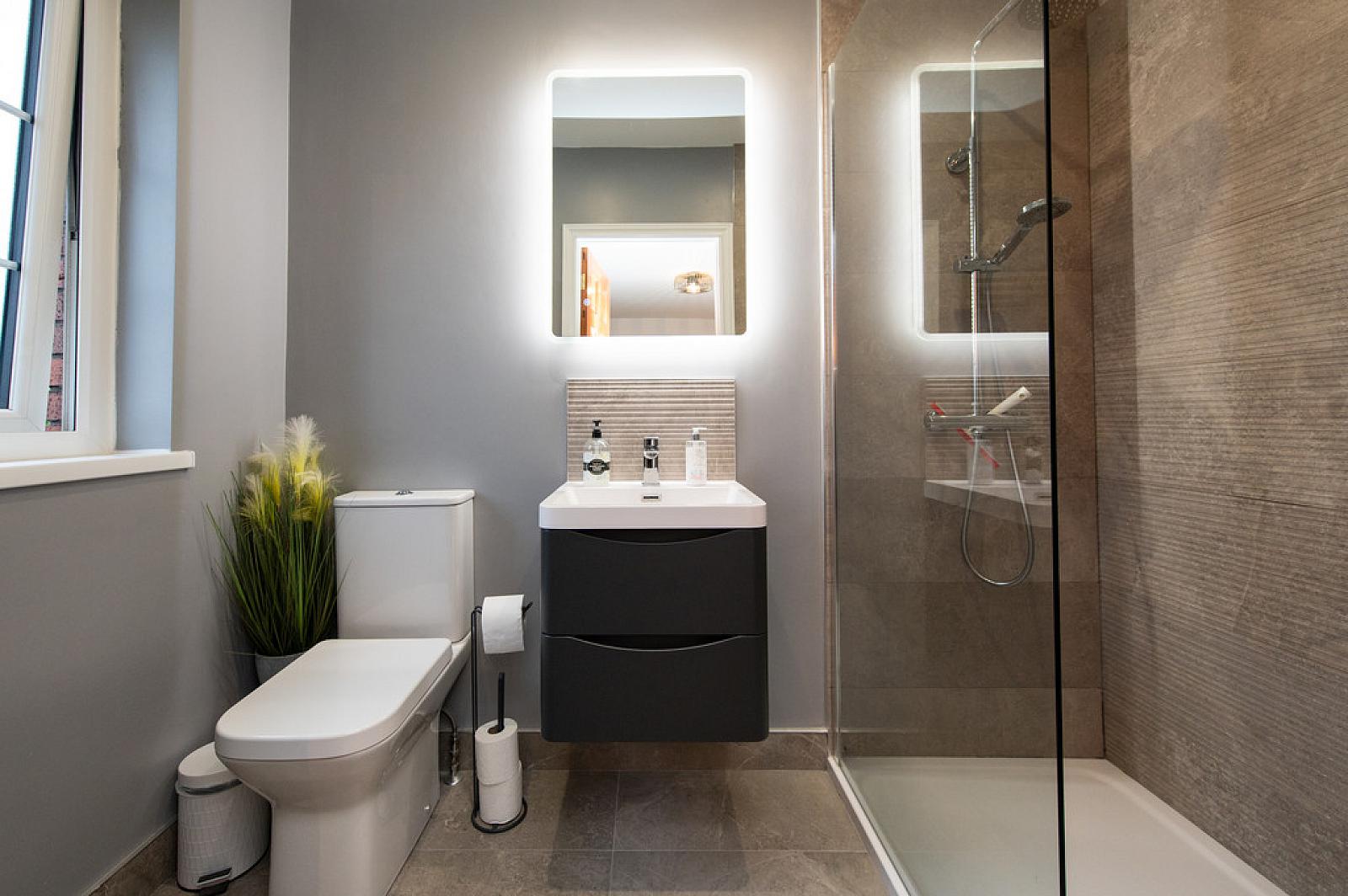 ENSUITE SHOWER ROOM Vanity unit, low flush W/C, shower unit with controlled shower, tiling, ceramic tiled flooring