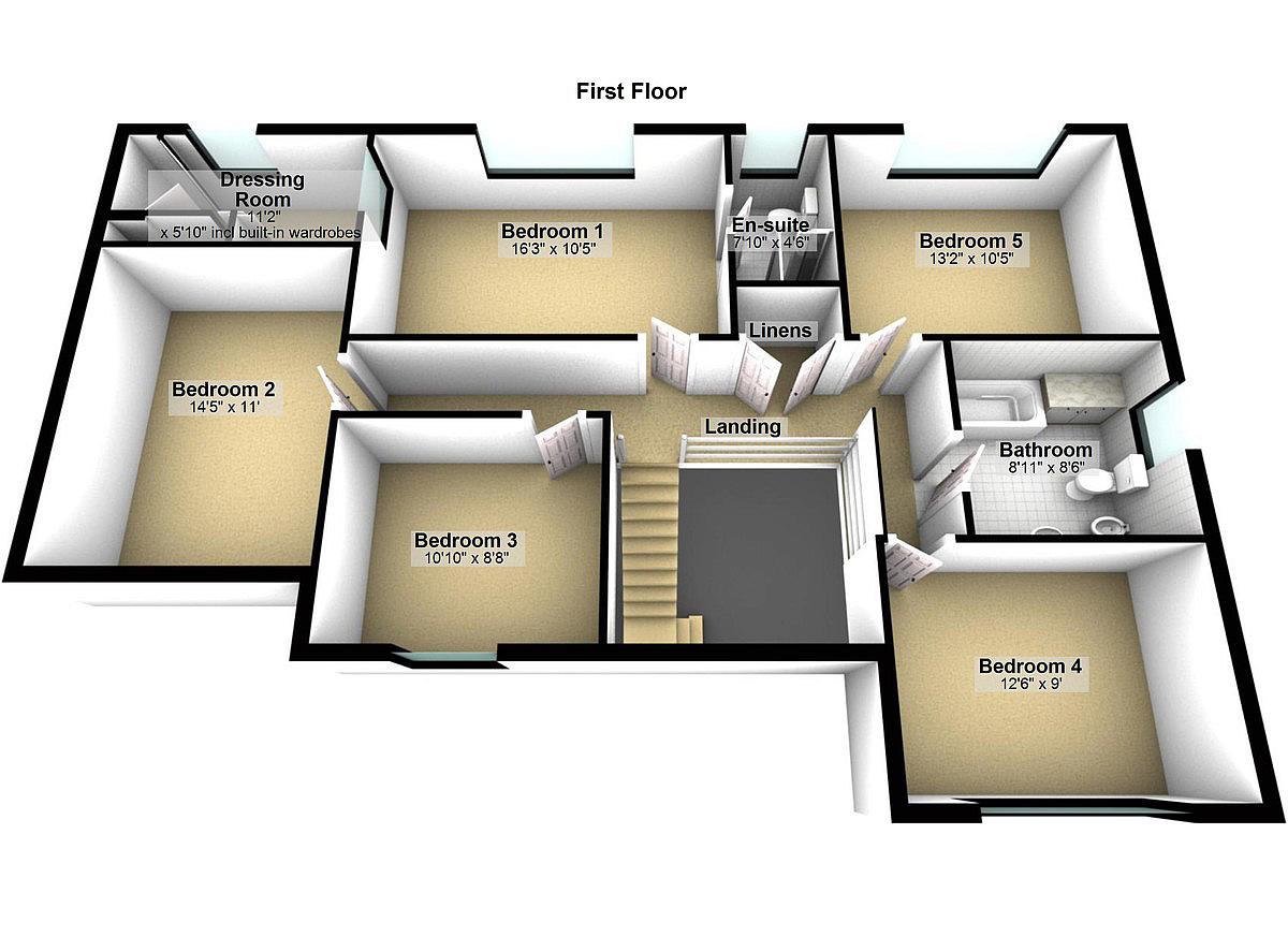 5 Bedrooms (1 with ensuite shower room and dressing room)