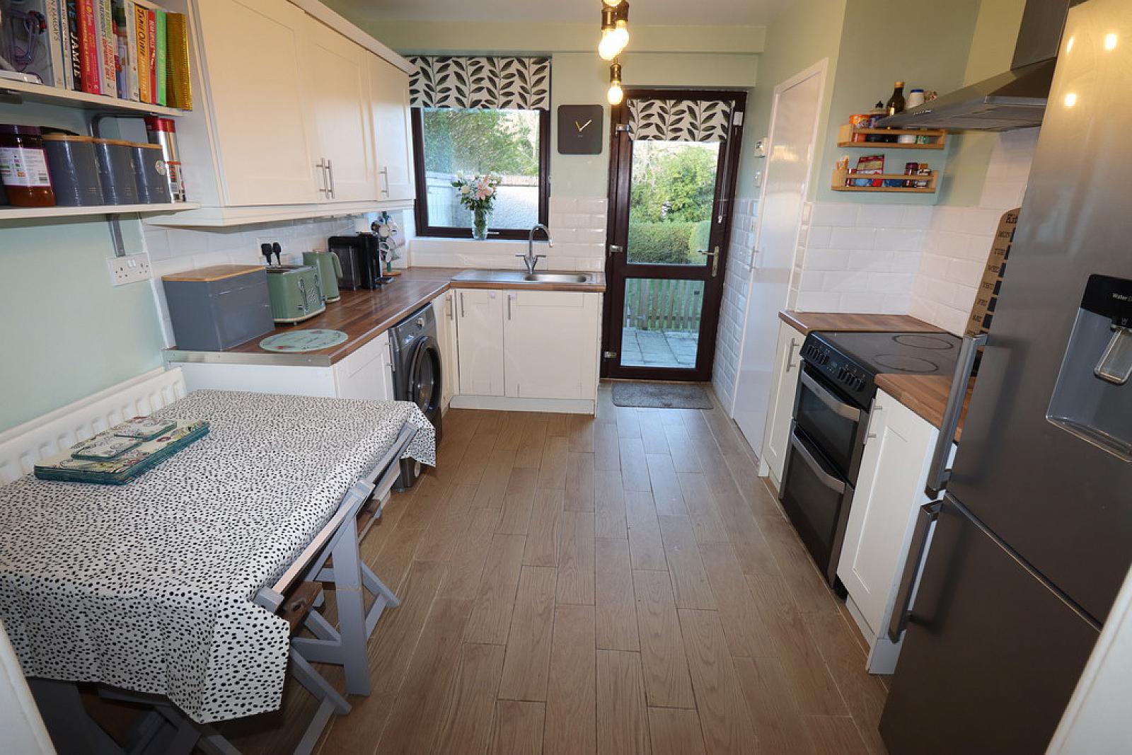 KITCHEN 11' 7" x 9' 9" (3.53m x 2.97m) Range of high and low level units, round edge worksurfaces, single drainer stainless steel sink unit with mixer taps, wall tiling, plumbed for washing machine, space for fridge freezer, cooker point, stainless steel oven, built in storage cupboard, tiled flooring