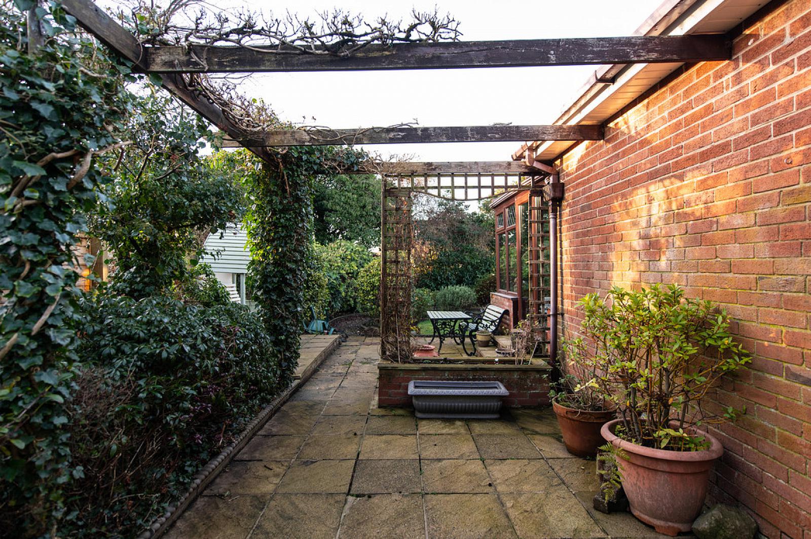 Side: pergola and paving