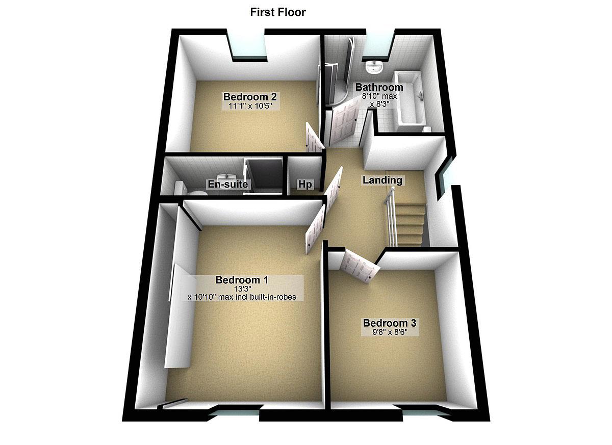 BEDROOM (1) 13' 3" x 10' 10" (4.04m x 3.3m) Including range of built in robes