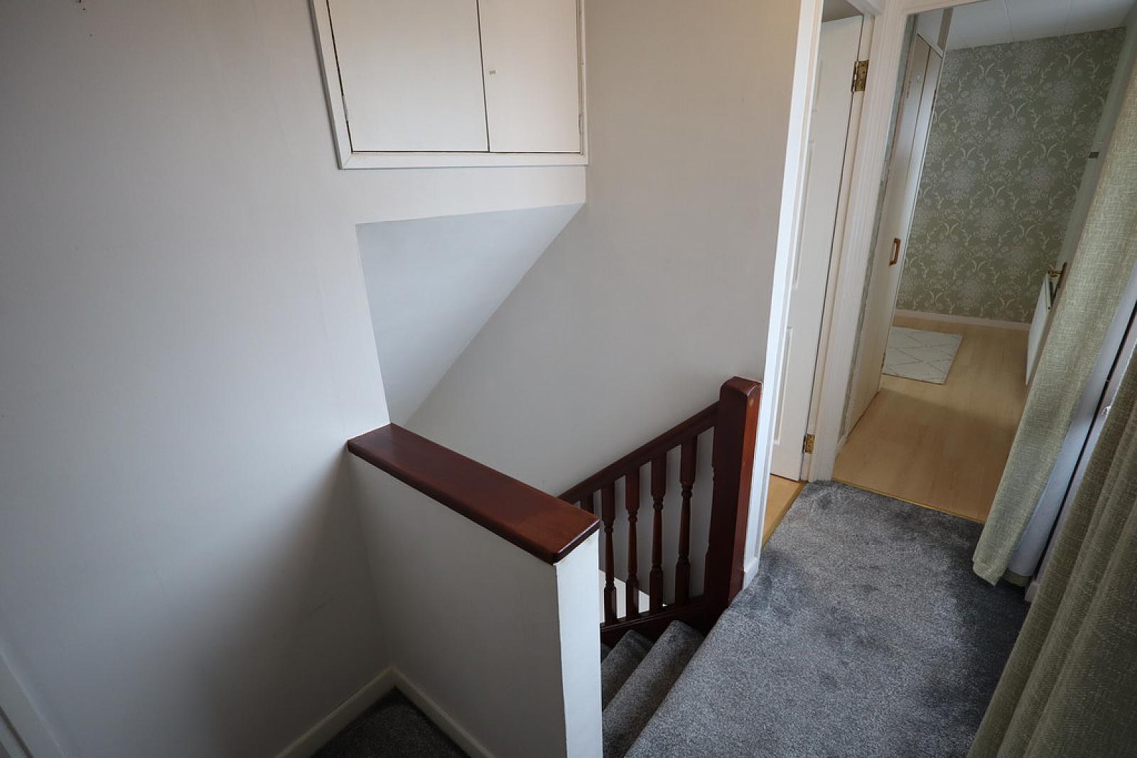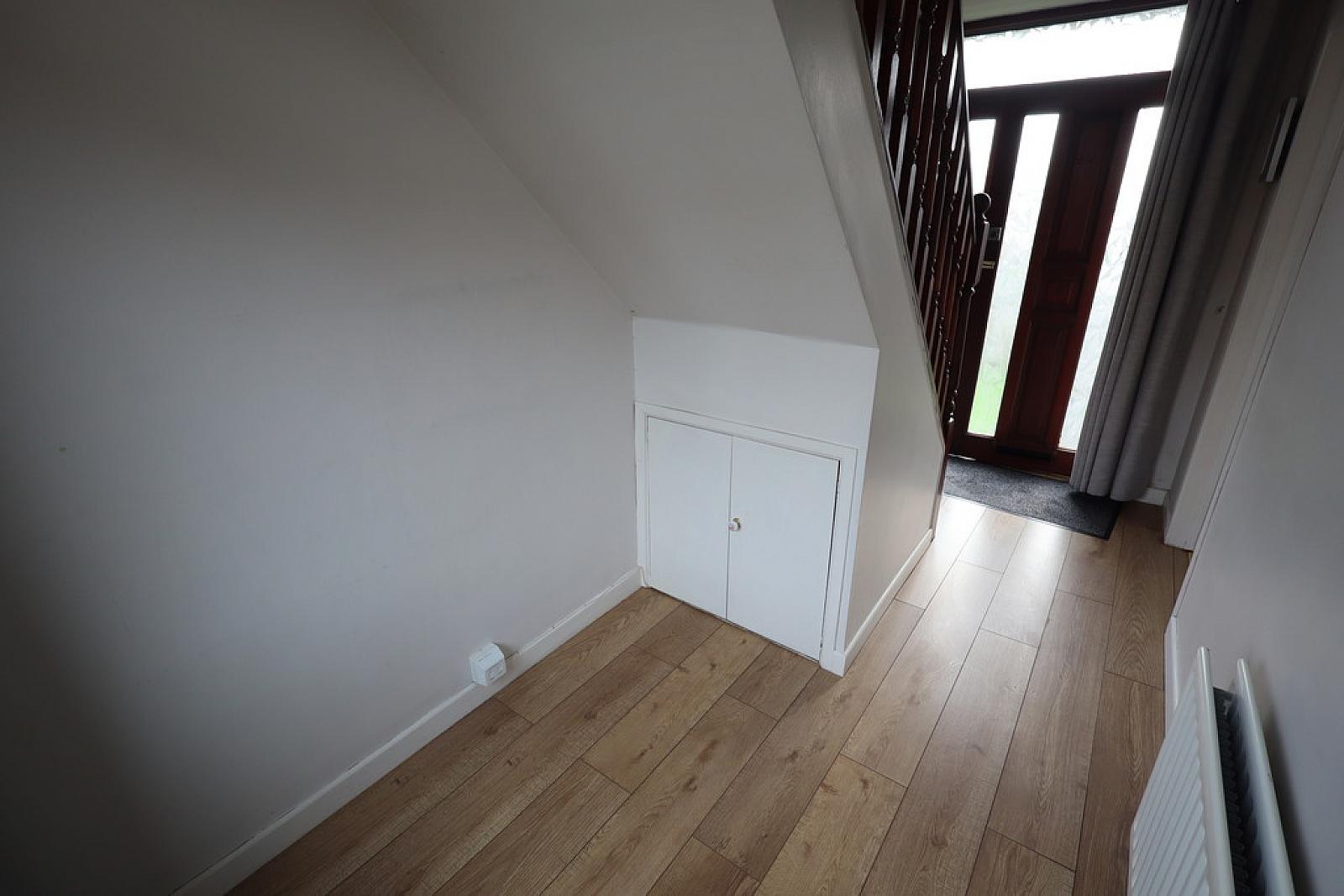 ENTRANCE HALL Laminate wood flooring, built in storage cupboard, understair storage