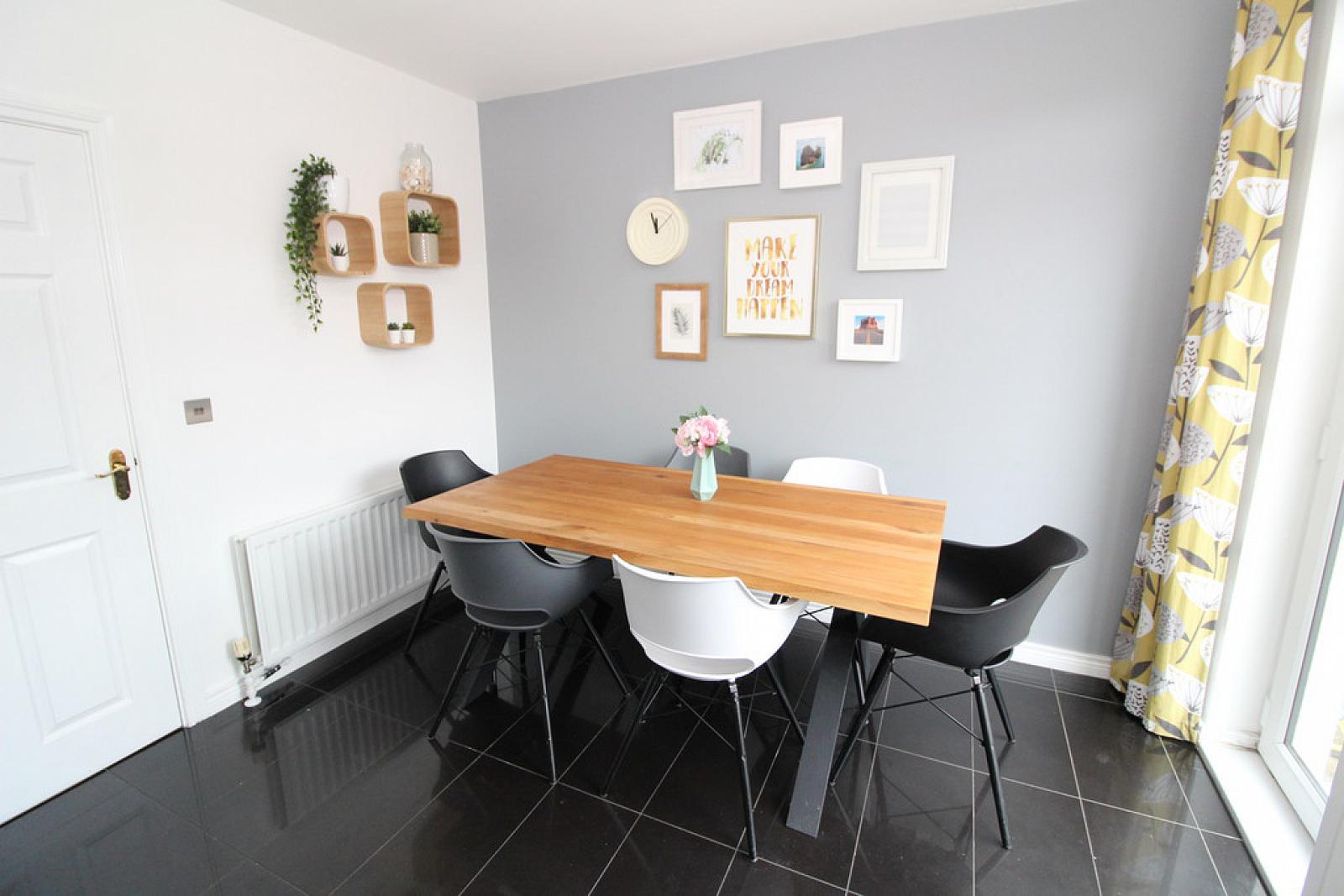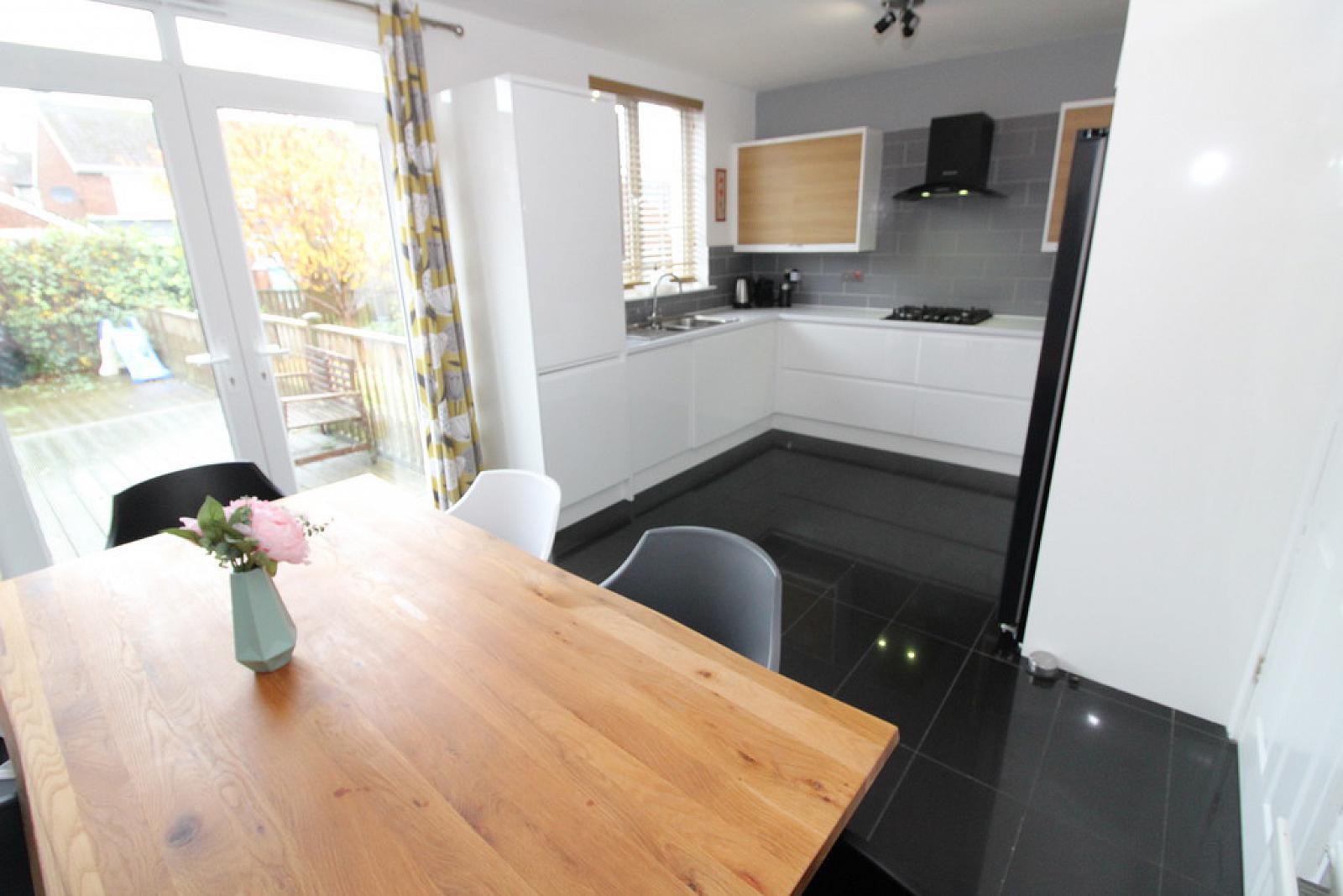 Modern fitted kitchen with casual dining area, French doors to rear