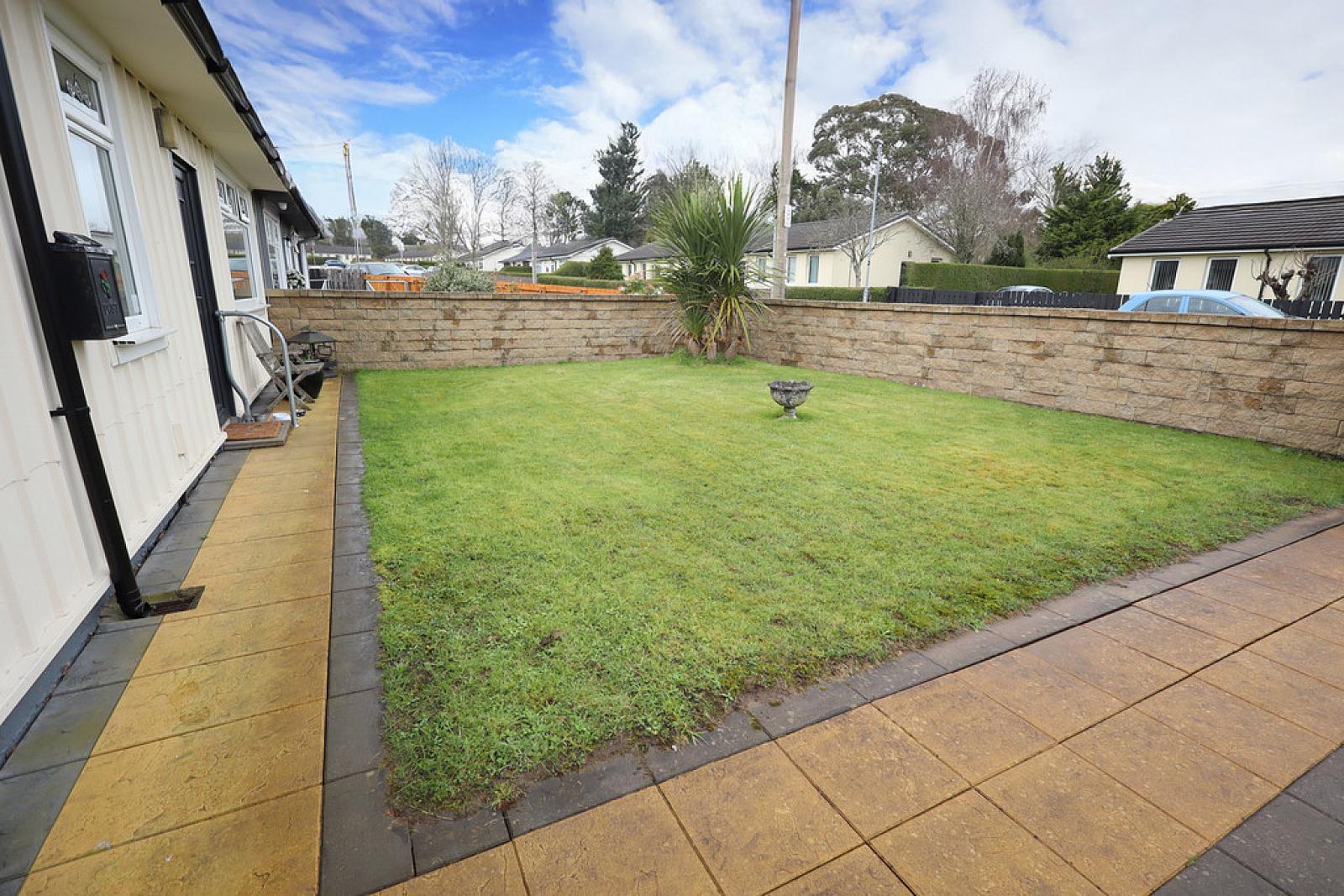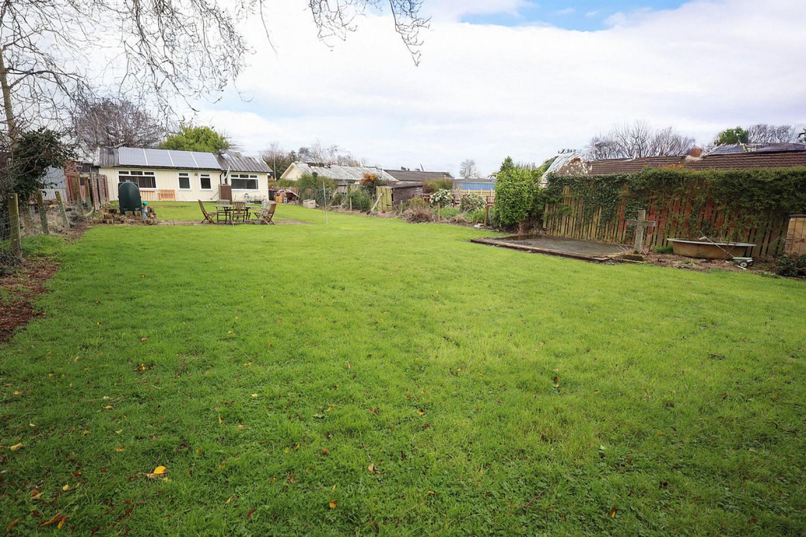 Rear: Generous garden to rear, in paving, shed, oil boiler, uPVC oil storage tank, outside tap and light