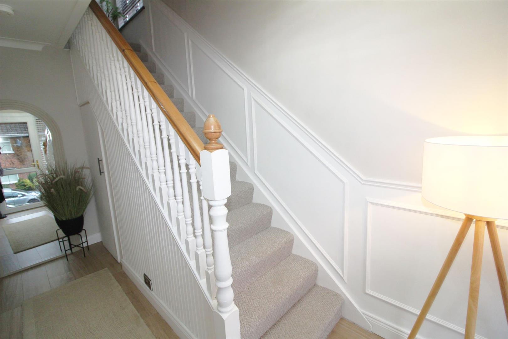uPVC front door, laminate wood flooring understairs storage, gas fired boiler