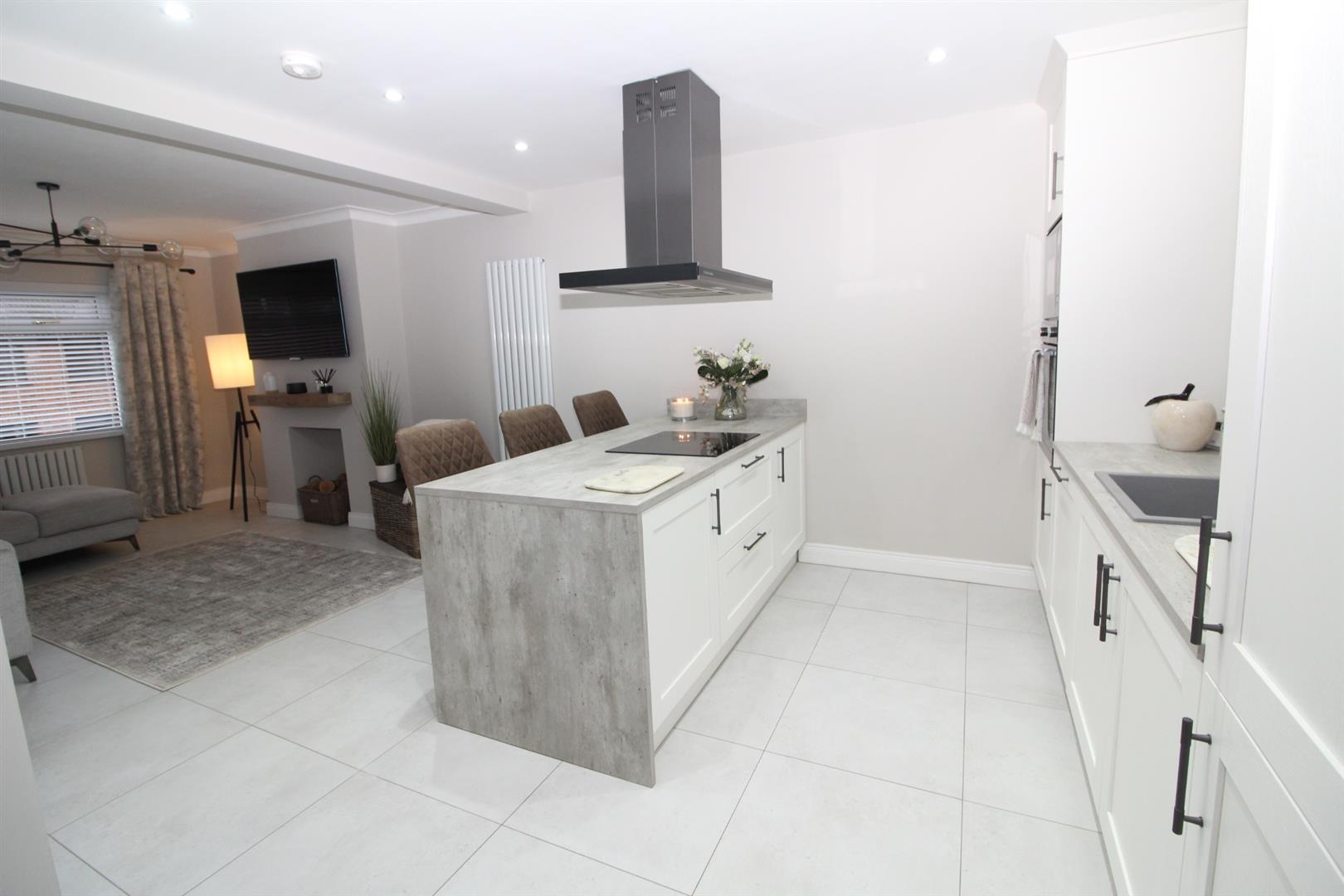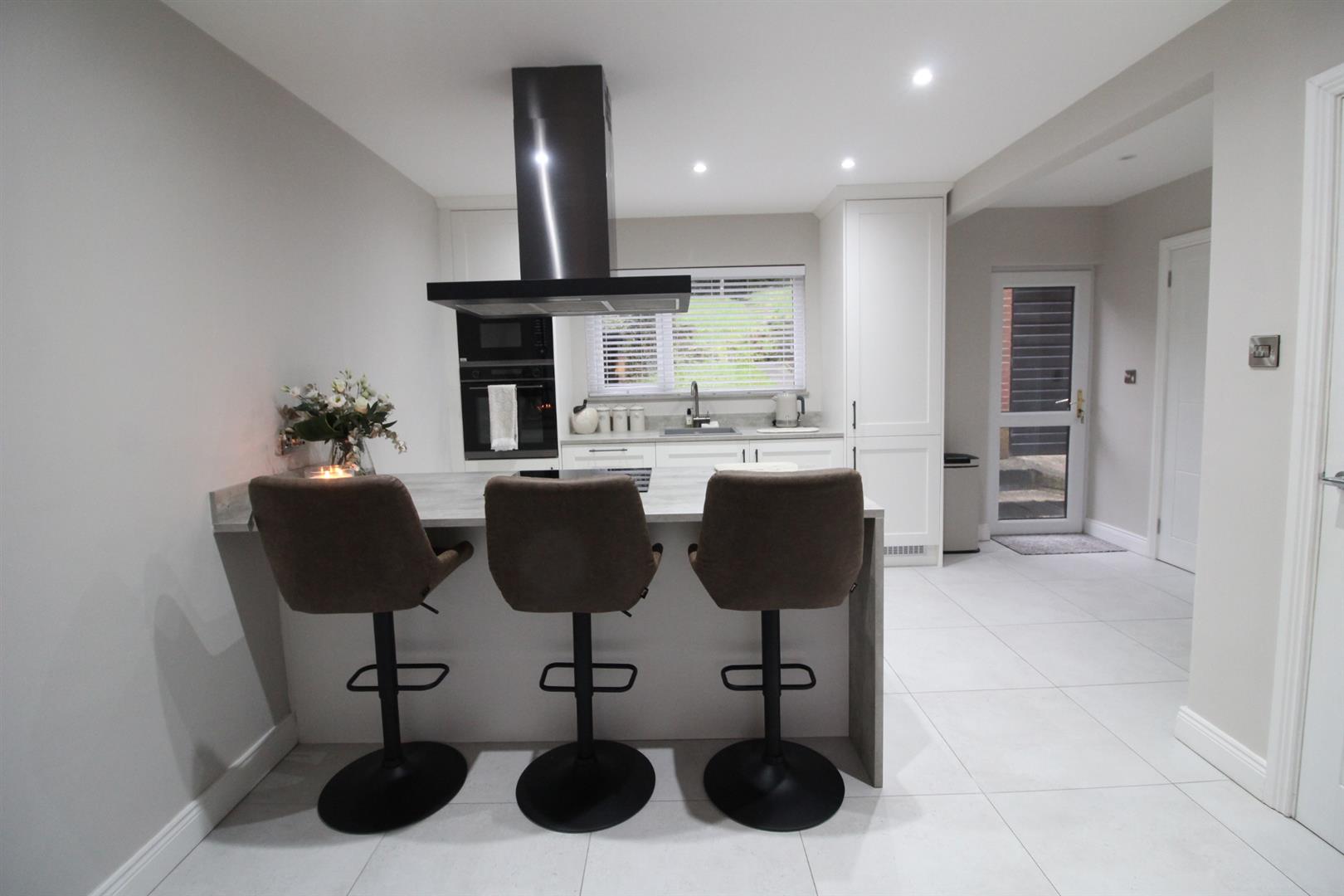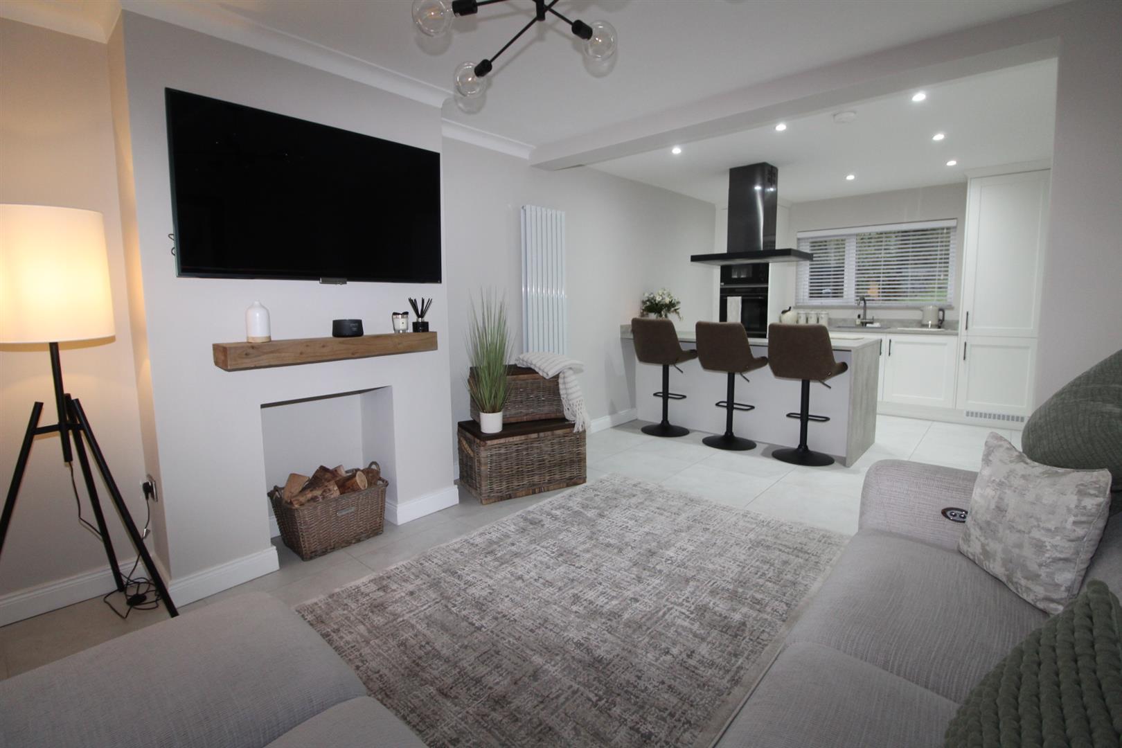 Set within a highly sought-after location, this stunning three-bedroom semi-detached villa is presented to an exceptional standard throughout. Stylish, modern and thoughtfully designed, the property offers a perfect blend of contemporary living and everyday practicality. The heart of the home is the impressive open-plan lounge and kitchen, finished with sleek cabinetry, integrated appliances, and a striking peninsula with seating, creating an ideal space for both entertaining and relaxed family living. Flooded with natural light, the layout flows beautifully and showcases the home´s high level of finish. Accommodation comprises three well-proportioned bedrooms, each presented with the same attention to detail, while the deluxe shower room features modern fittings and a clean, sophisticated design. Every room reflects the property´s highest level of presentation, making this a truly walk-in-ready home.