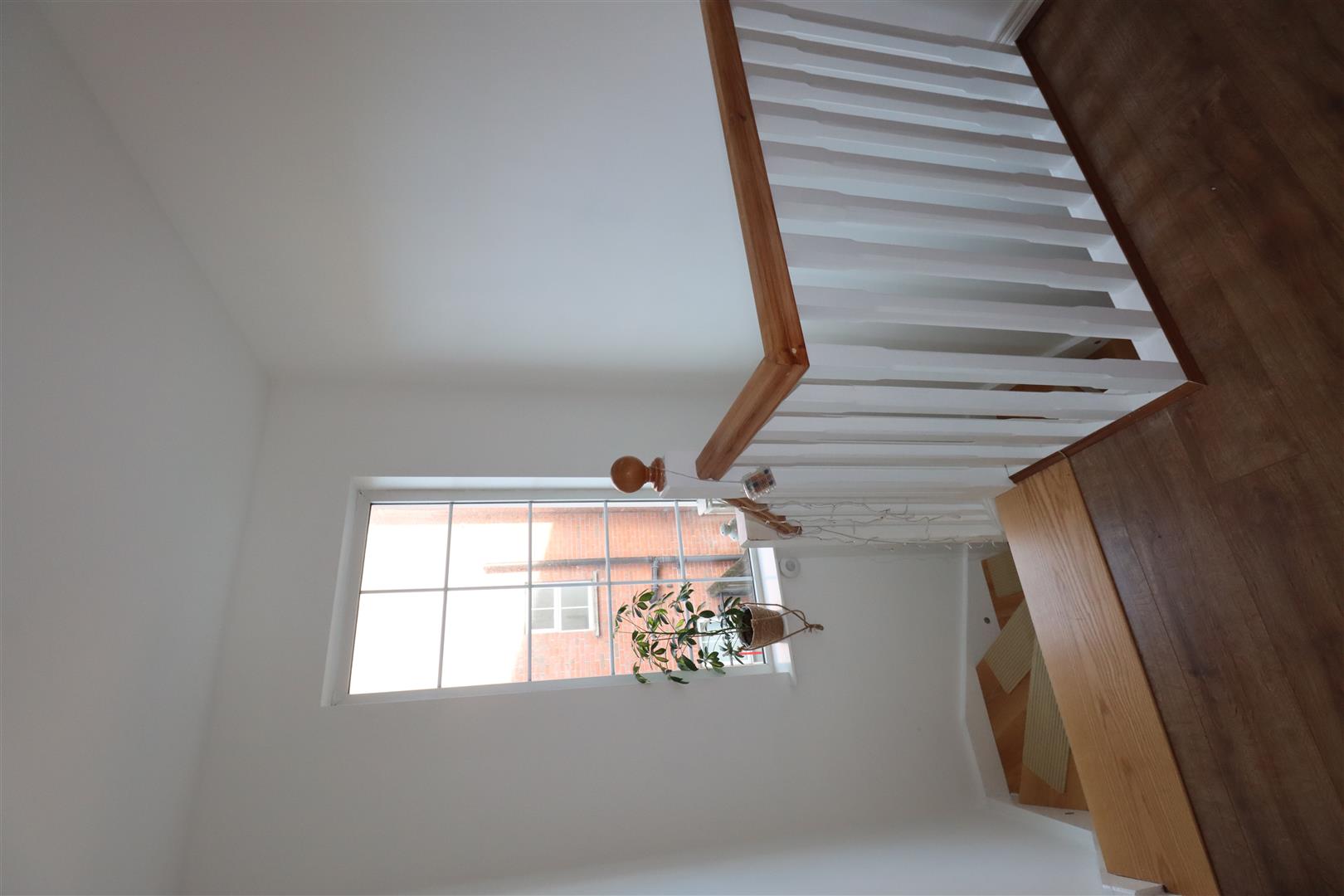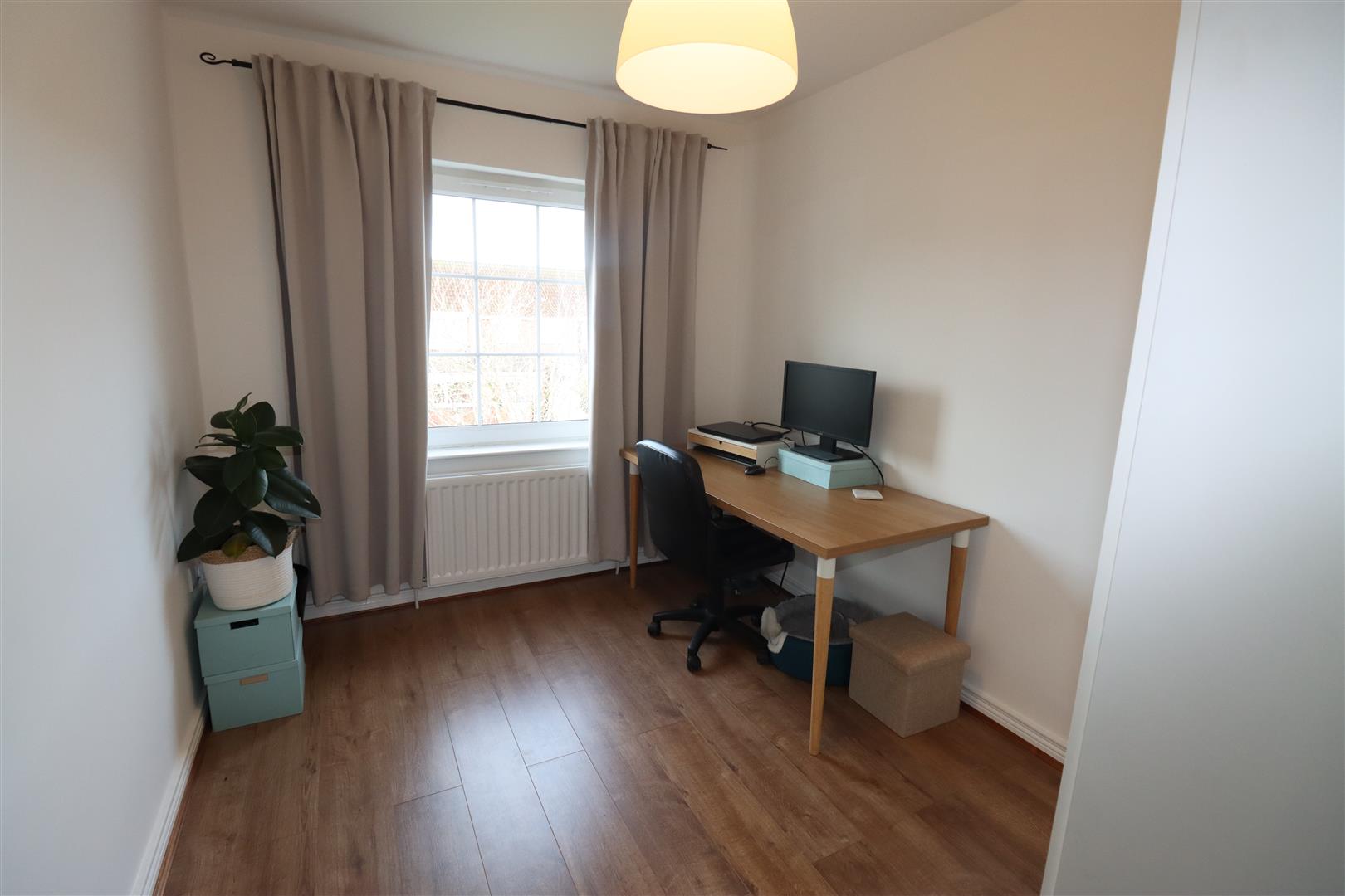 Laminate wood flooring, built in cupboard , separate storage cupboard, understairs storage