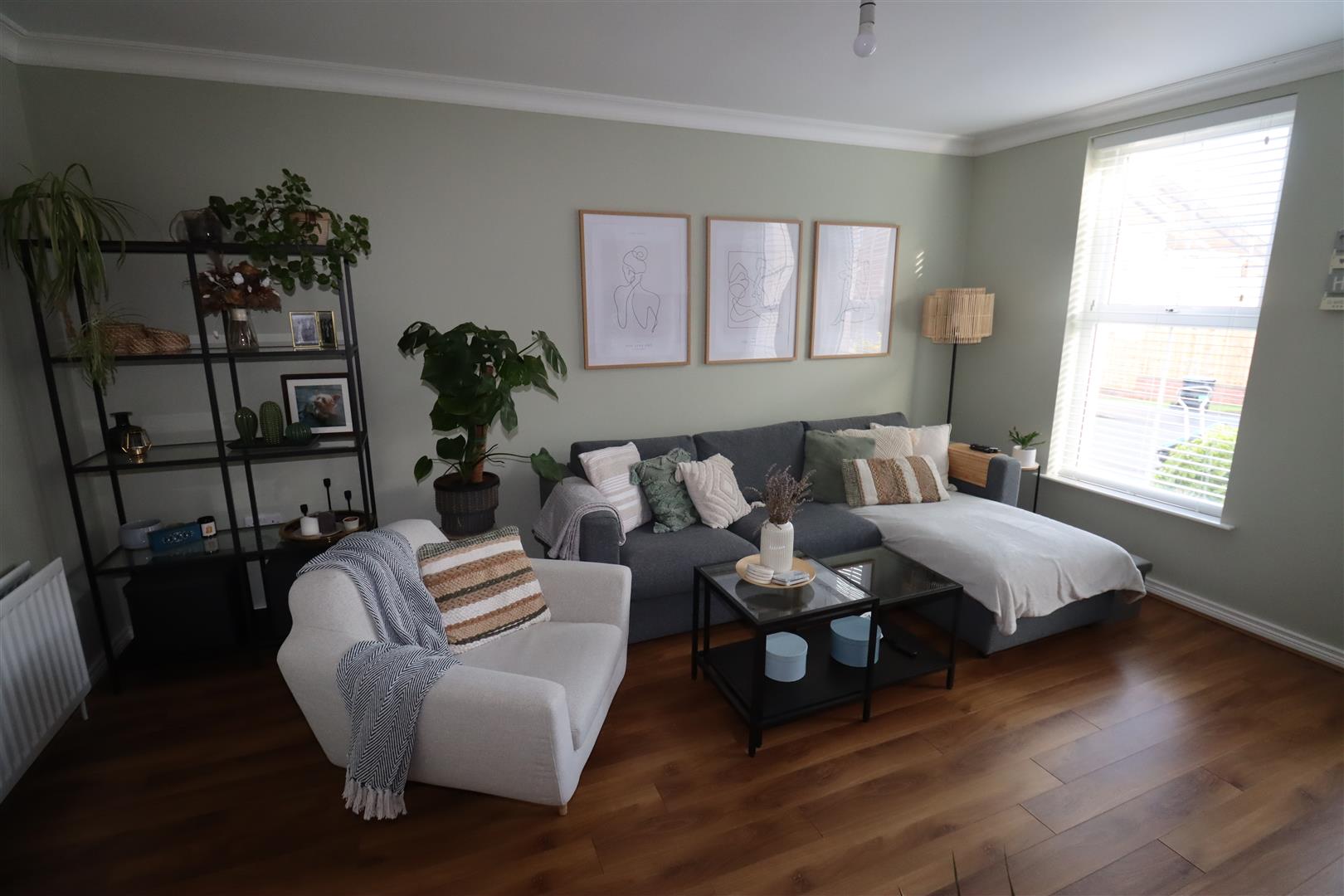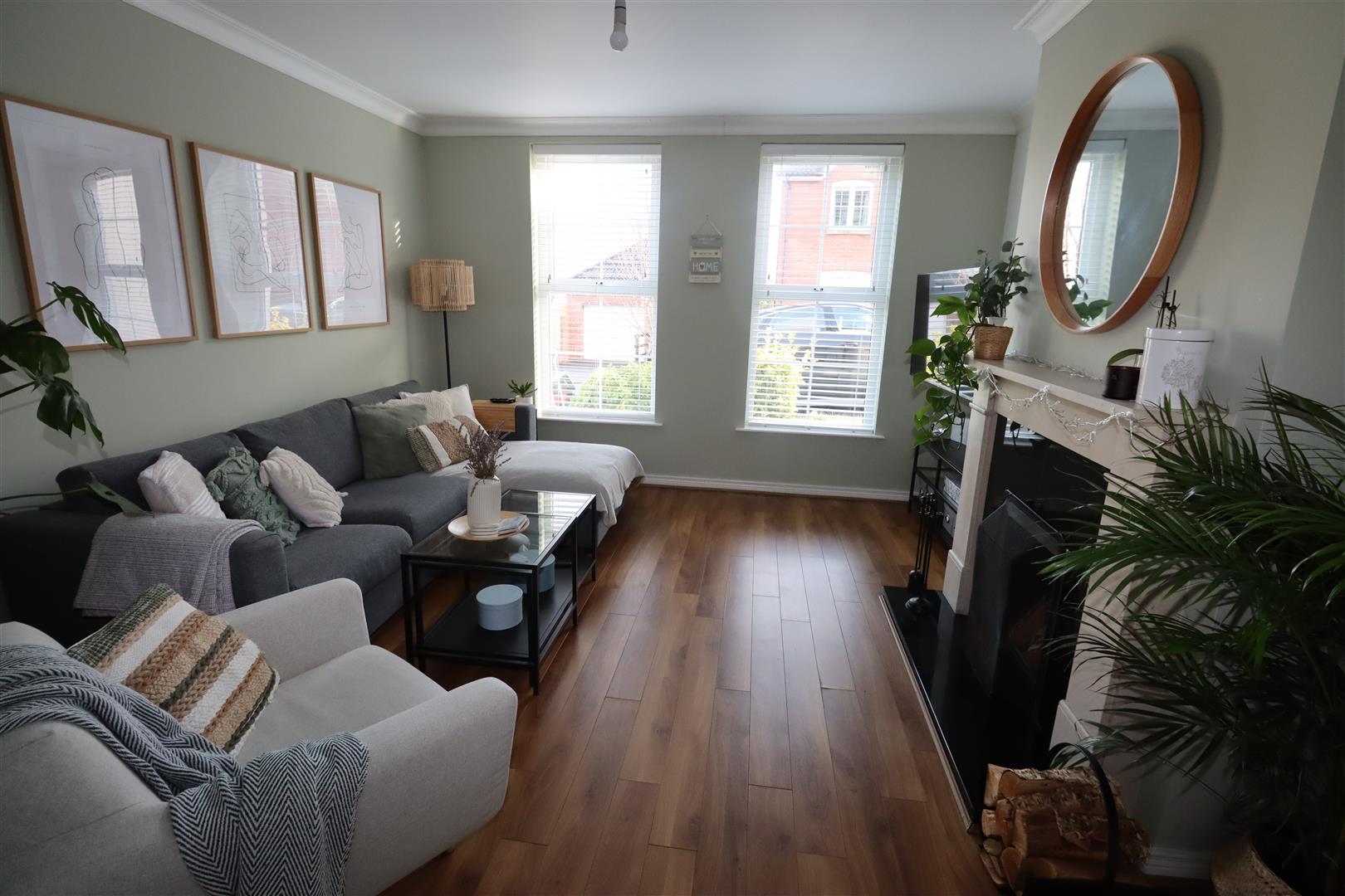 Laminate wood floor, feature fireplace