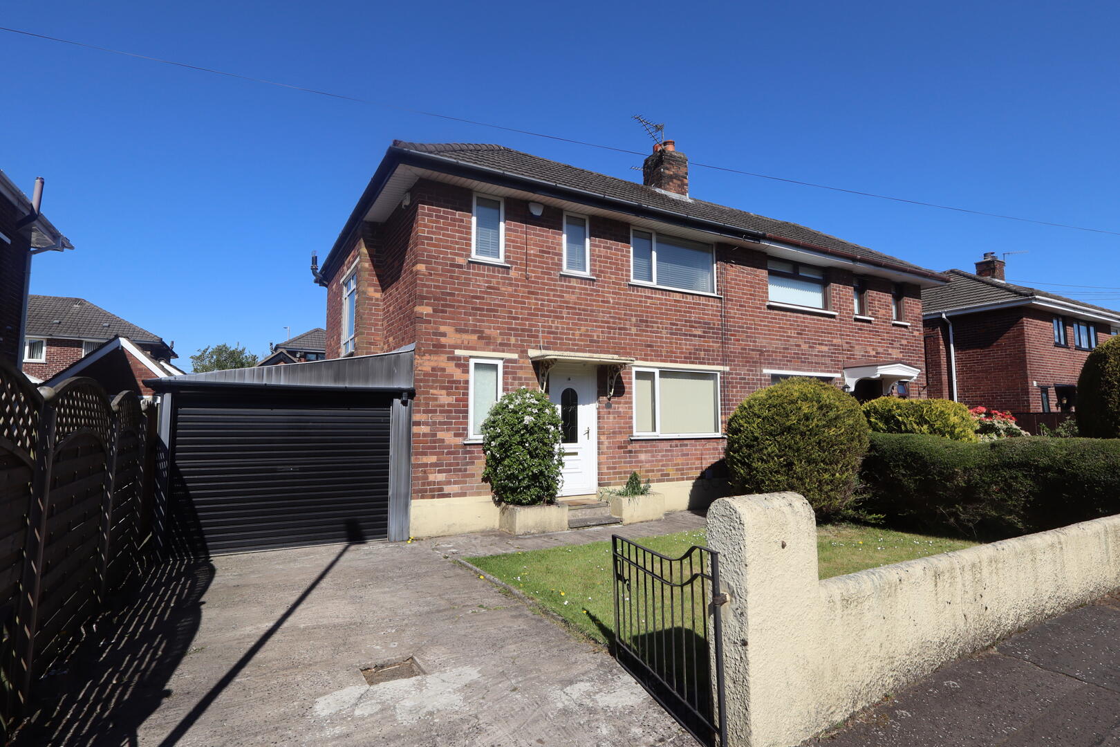 Located within a highly sought-after and convenient residential area, this spacious semi-detached villa offers excellent family accommodation close to well regarded schools, local shops, and public transport amenities. The property comprises three bedrooms, a comfortable lounge featuring an attractive fireplace and a practical fitted kitchen ideal for modern family living. A downstairs shower room adds flexibility and convenience to the home´s layout. Further benefits include oil fired central heating and double glazing throughout in uPVC frames. Outside, the property enjoys a front garden with private car parking, while to the rear there is a fully enclosed garden providing a safe and private outdoor space for families or entertaining. A detached garage offers additional storage or secure parking options. With its desirable location and well-balanced accommodation, this appealing home is perfectly suited to growing families, first-time purchasers, or those seeking a sound investment opportunity.