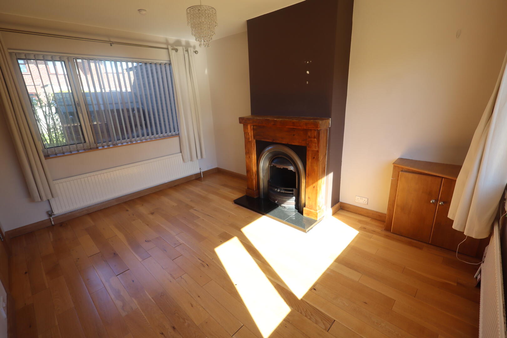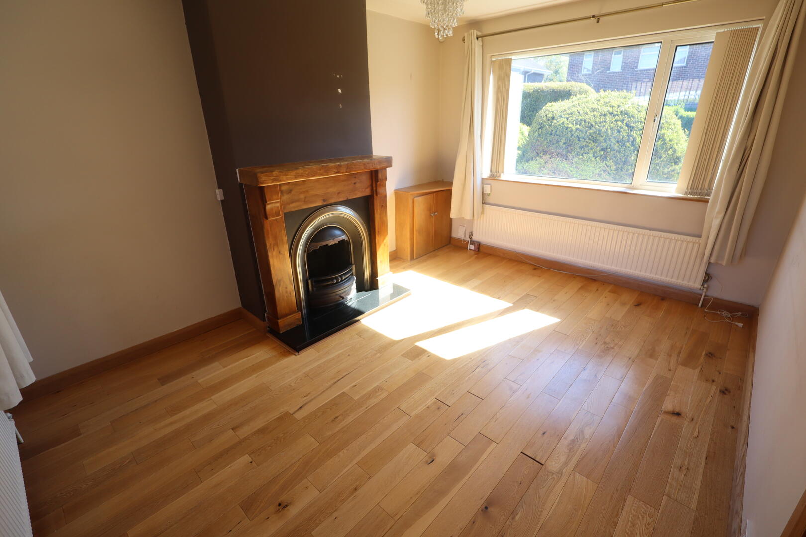 Solid wood flooring, feature fireplace with tiled hearth