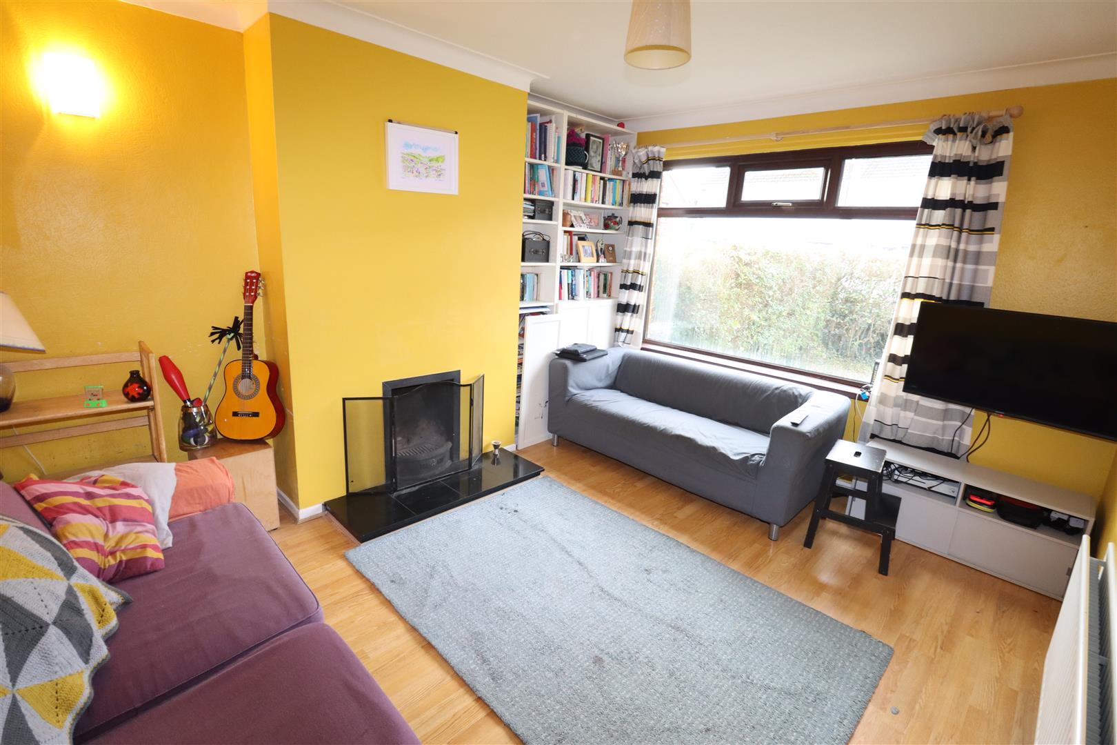 Fireplace, tiled hearth, cornicing, built in storage