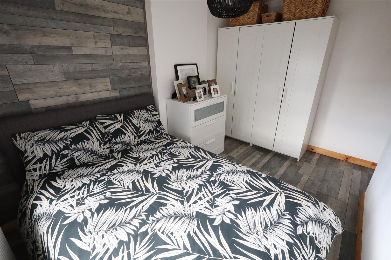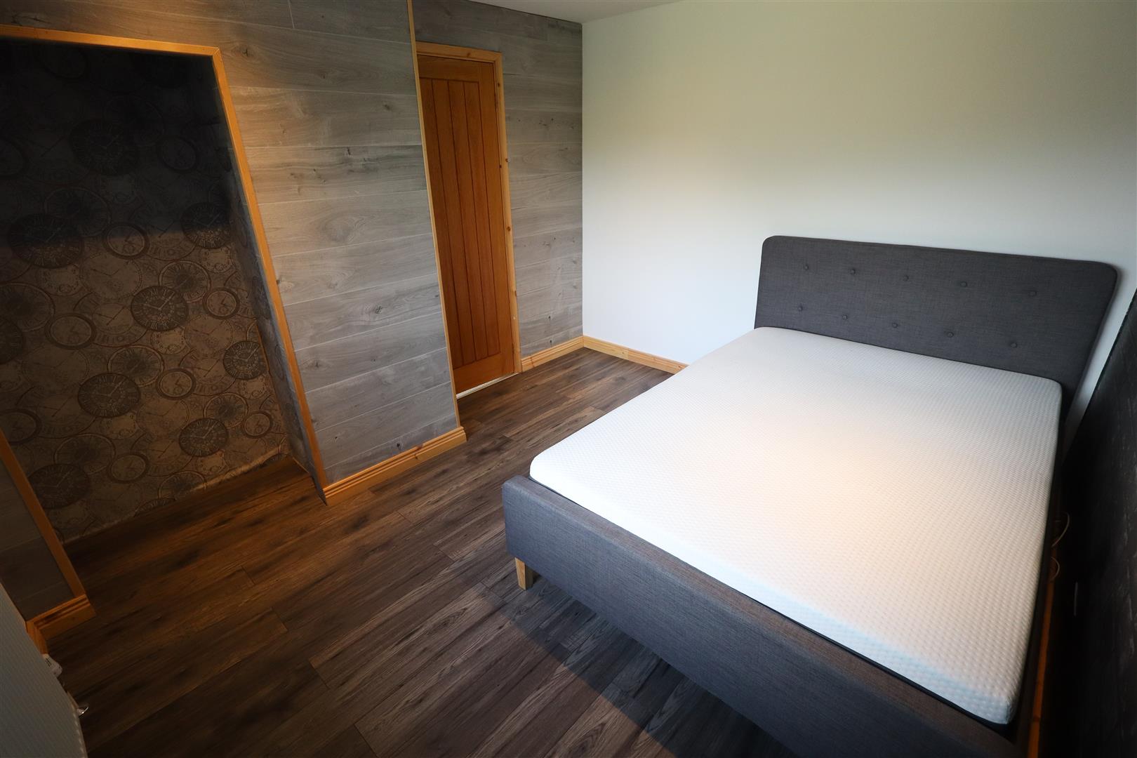 Built in wardrobe, feature wall panelling, laminate wooden flooring