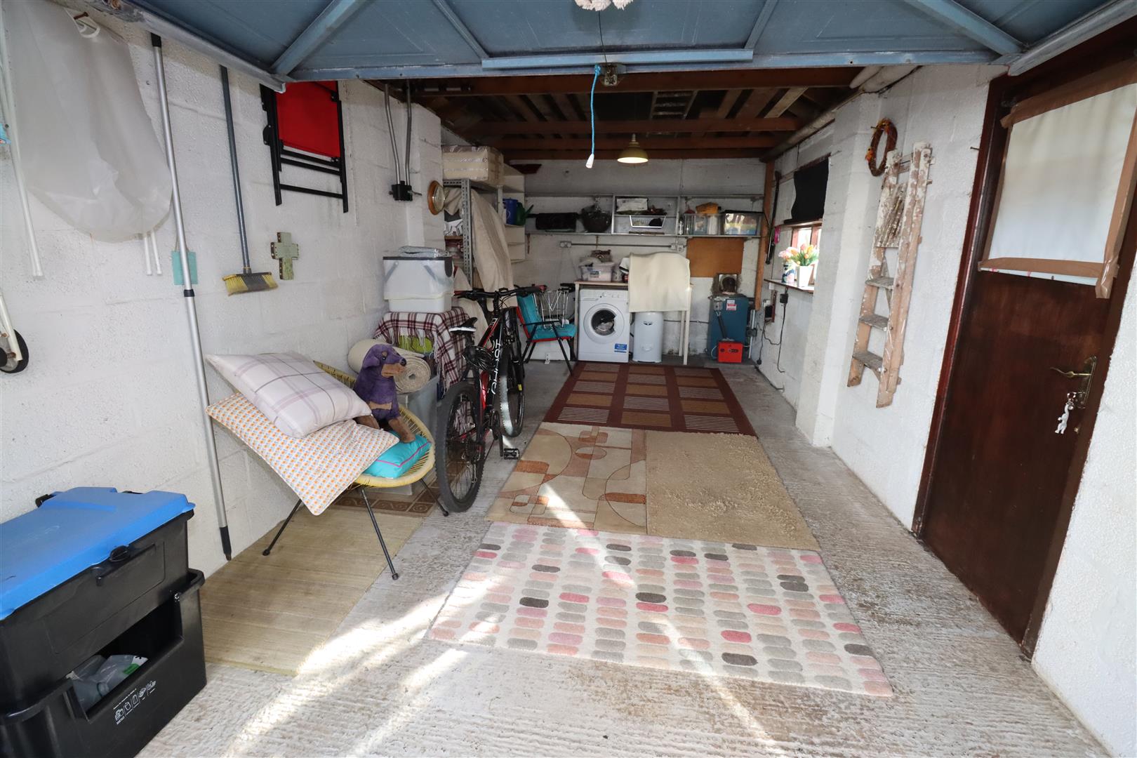 Plumbed for washing machine, up and over door, oil fired boiler, light