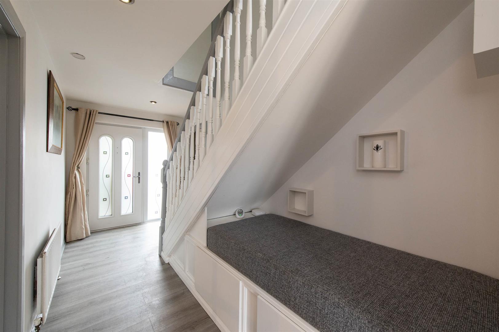 uPVC front door, downlighters, laminate wood flooring
