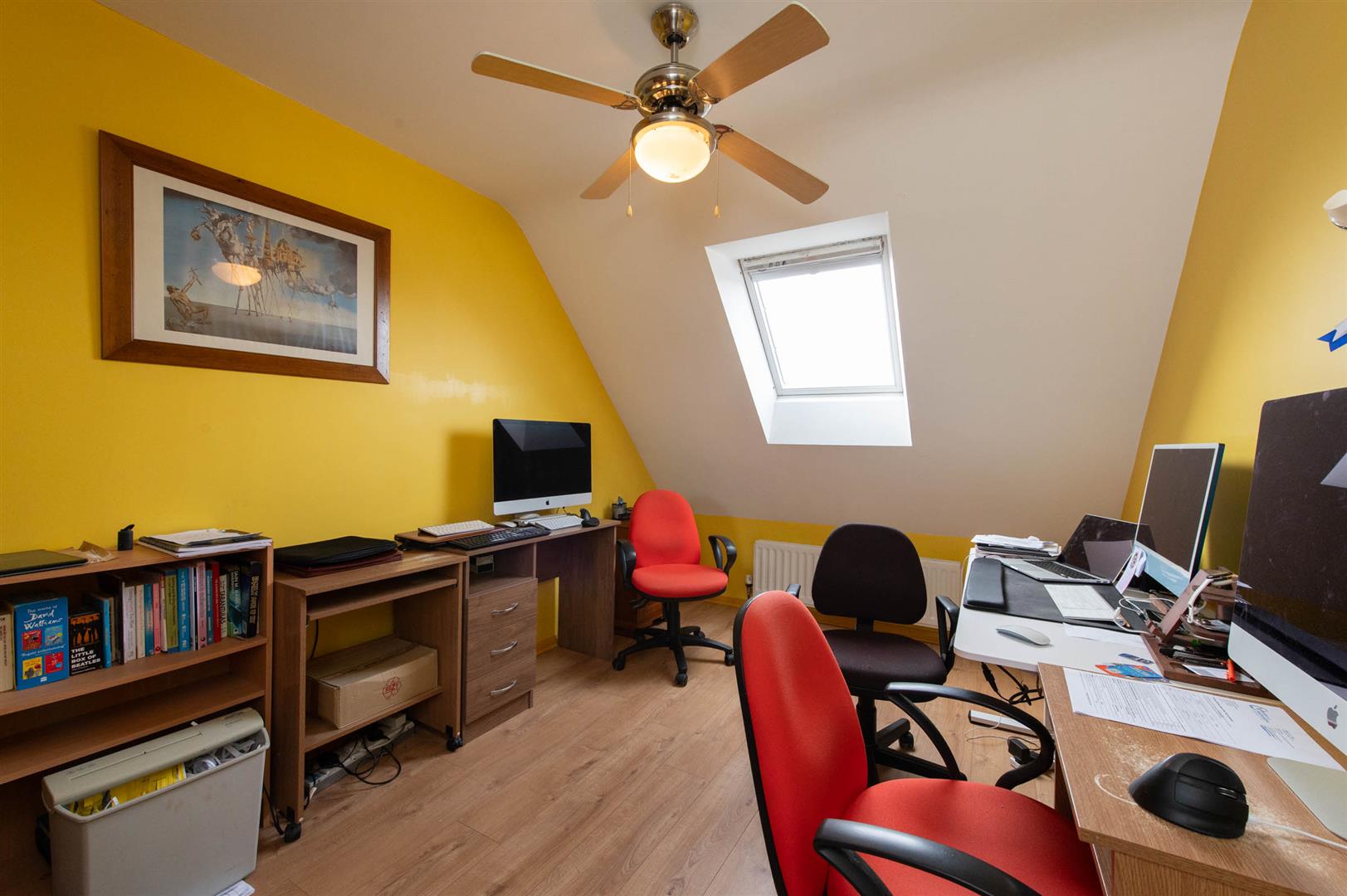 At skirting board level, laminate wood flooring, Velux window