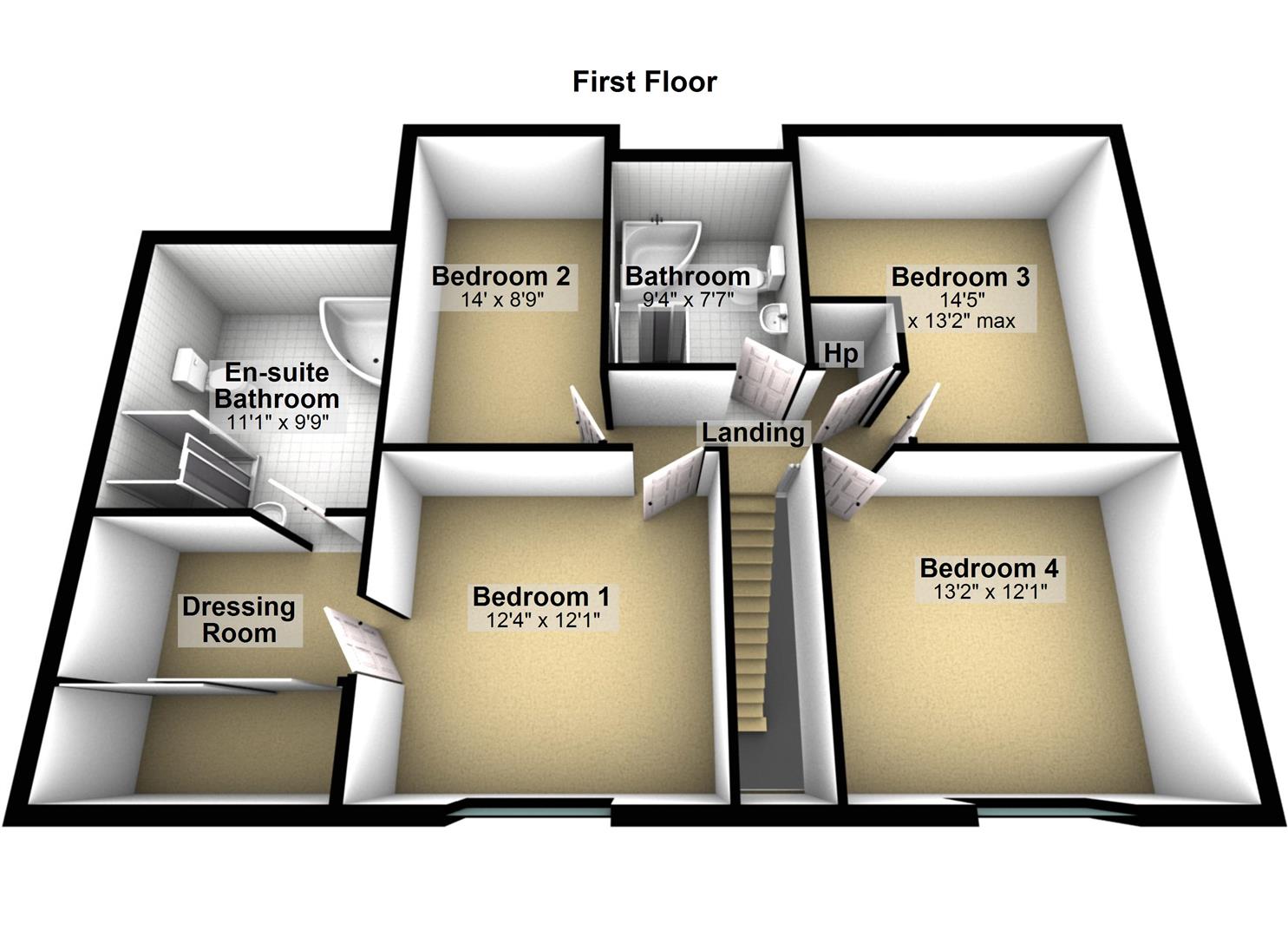 4 Bedrooms (master with ensuite bathroom & dressing room)