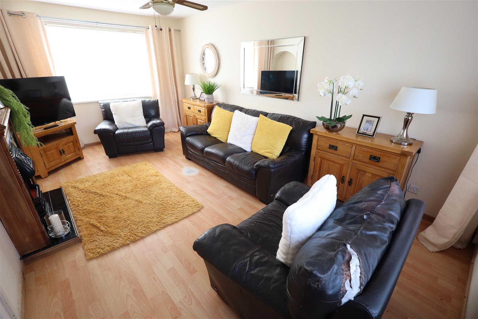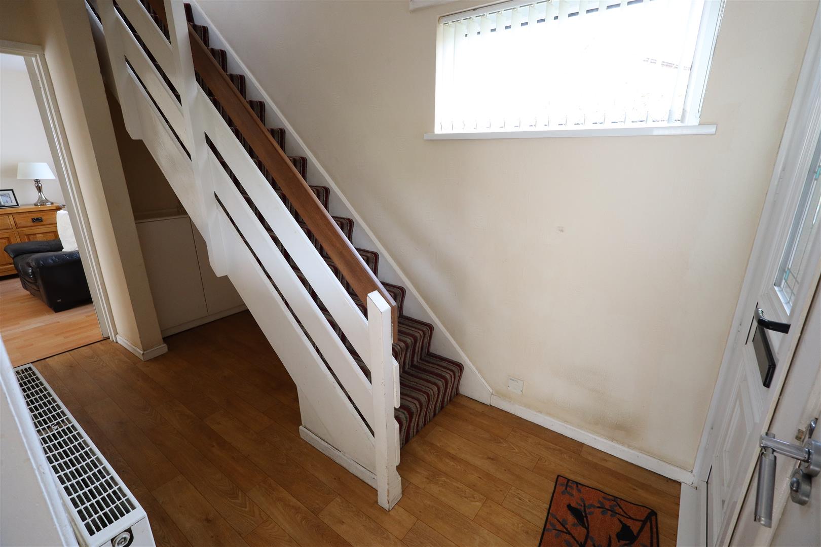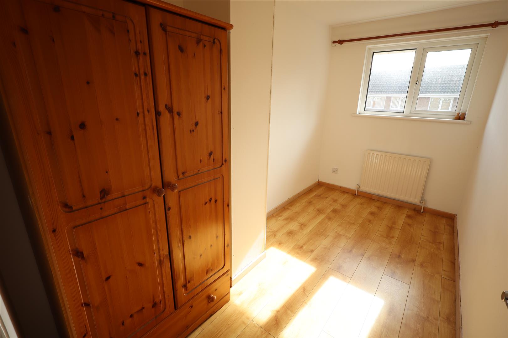 Laminate wooden flooring, 2 separate storage cupboards