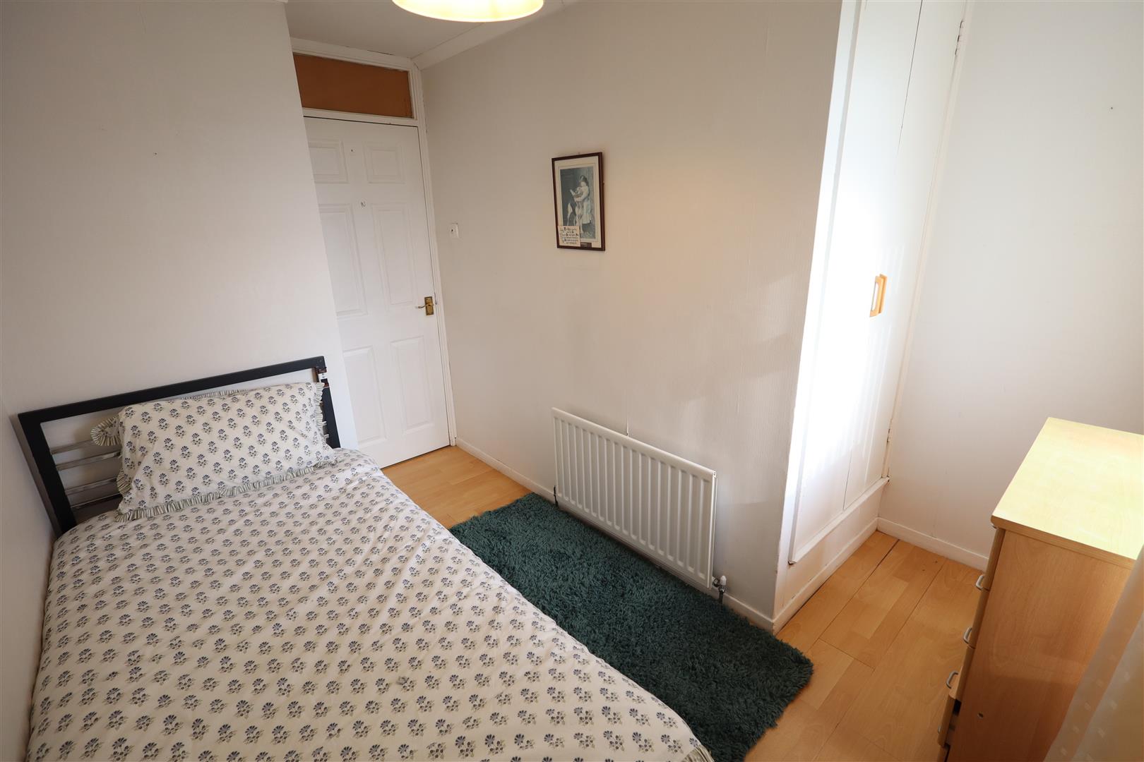 Laminate wood flooring, cornicing, built in storage, access to roofspace