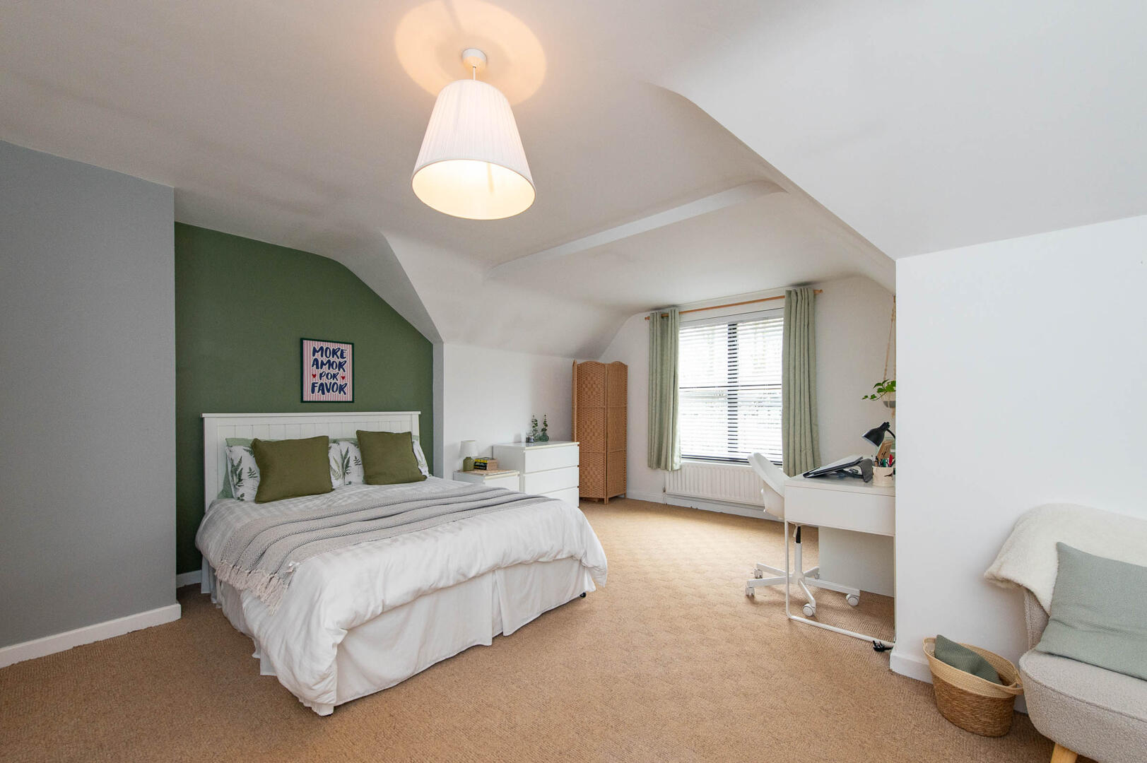 Velux window, twin built in storage cupboards, access to roofpace