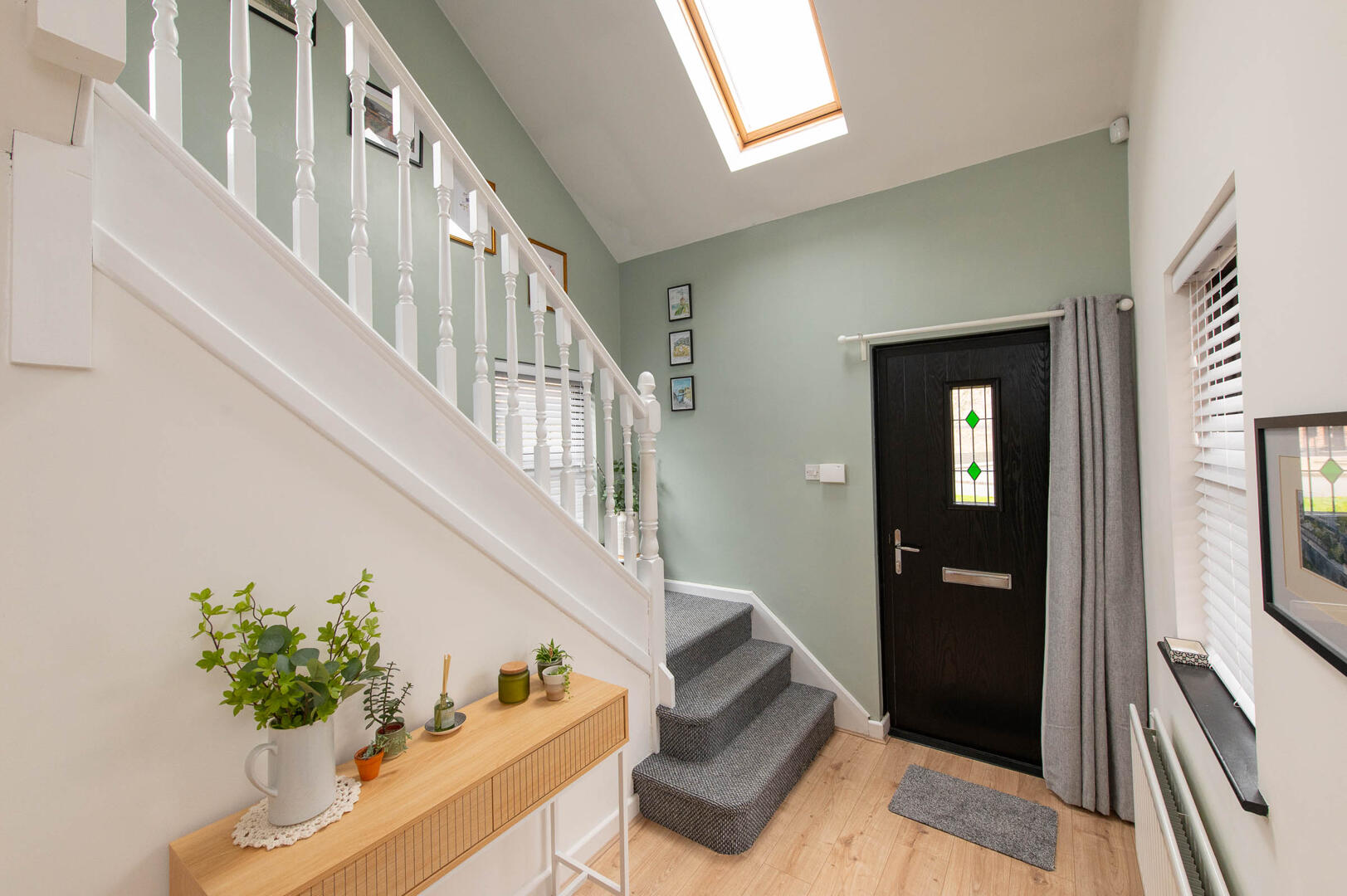 Composite front door, laminate wood flooring, cloaks