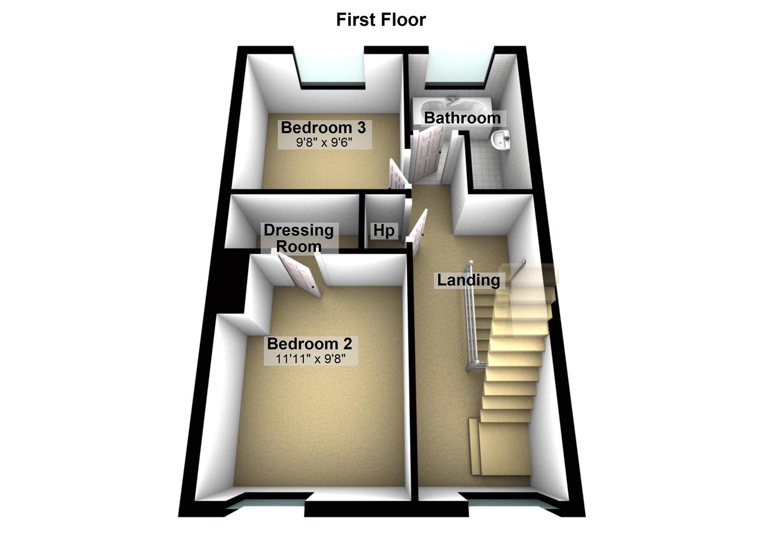 3 Bedrooms (master bedroom with ensuite shower room)