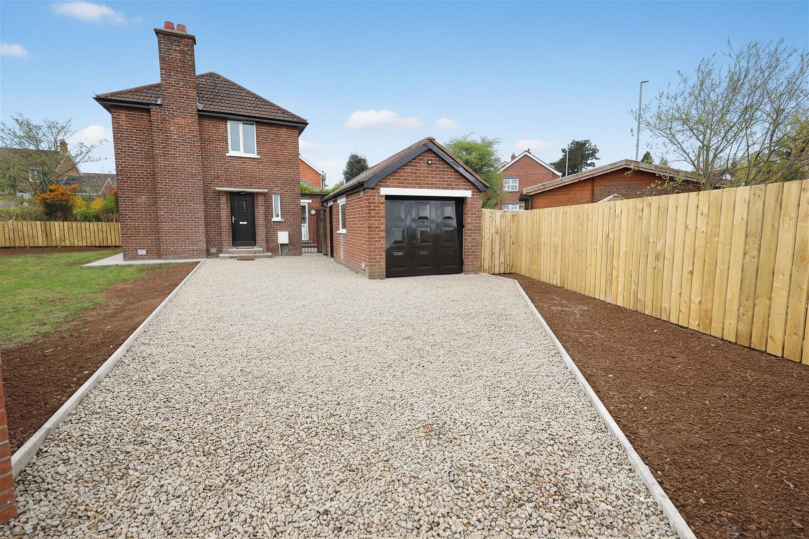 Front: In lawn, luxury paving, brand new fencing throughout