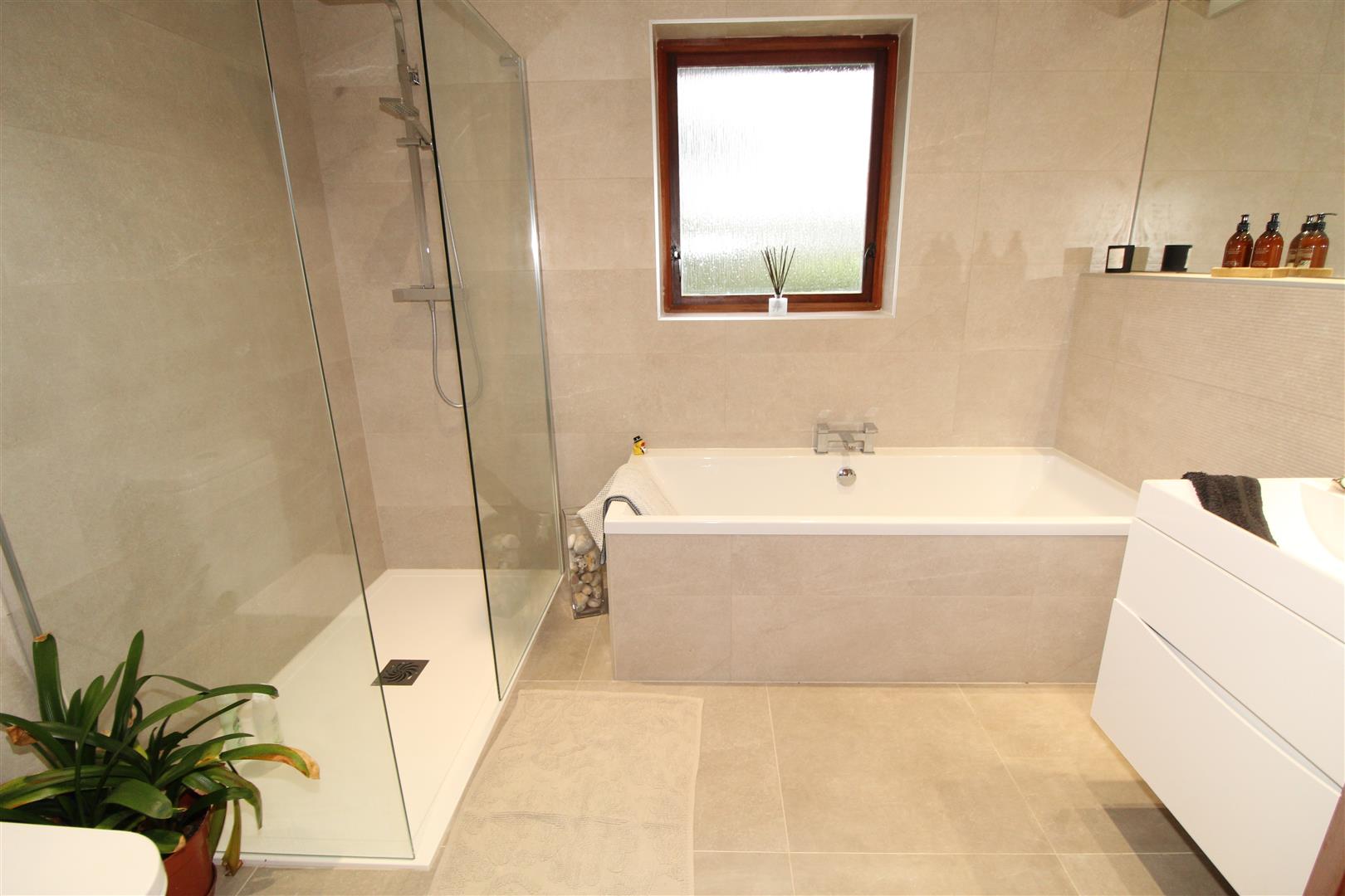 Luxury white bathroom suite with shower and separate bath