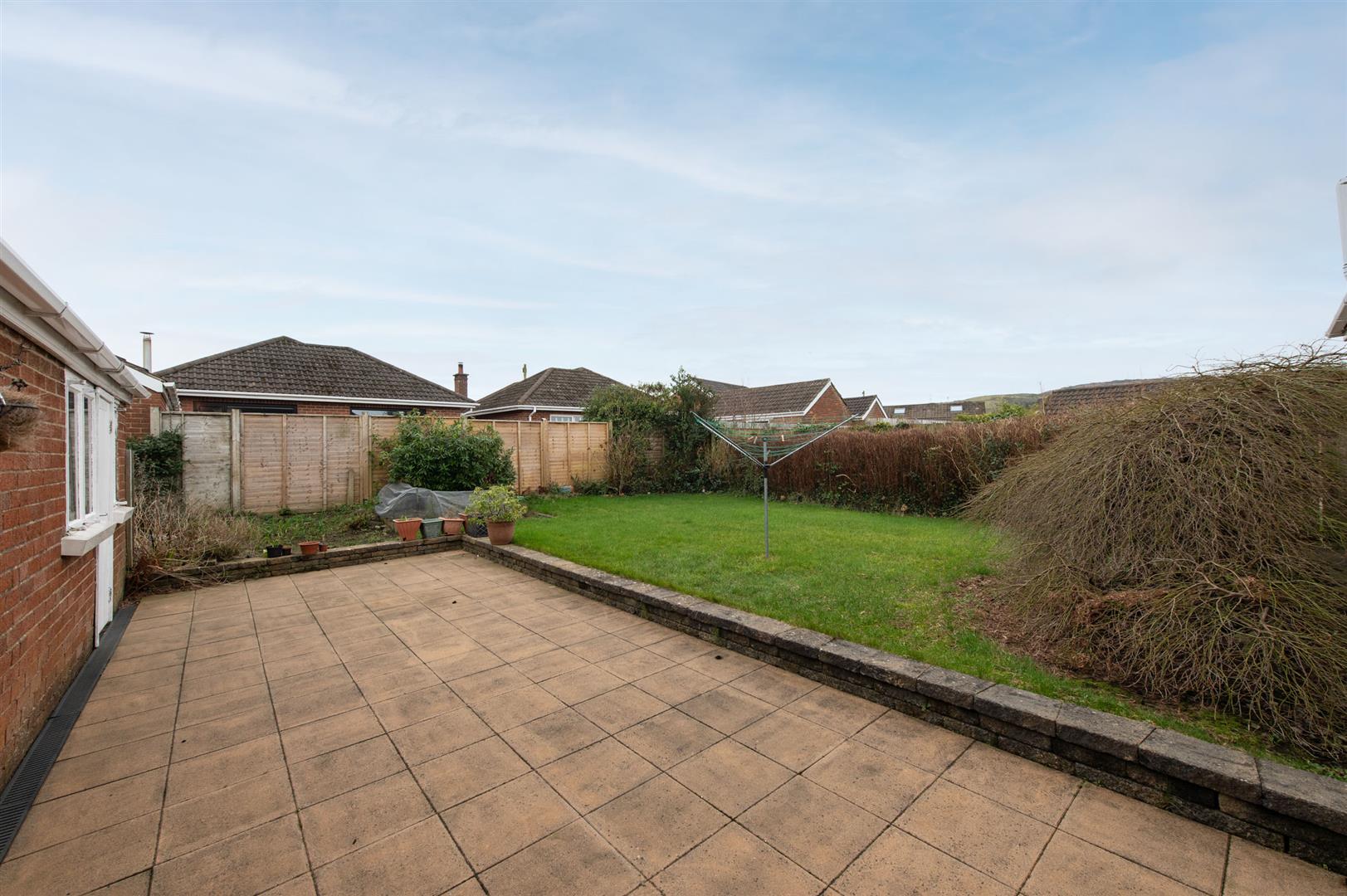 Rear: In paving, in lawn, hedges, plants and shrubs, outside light