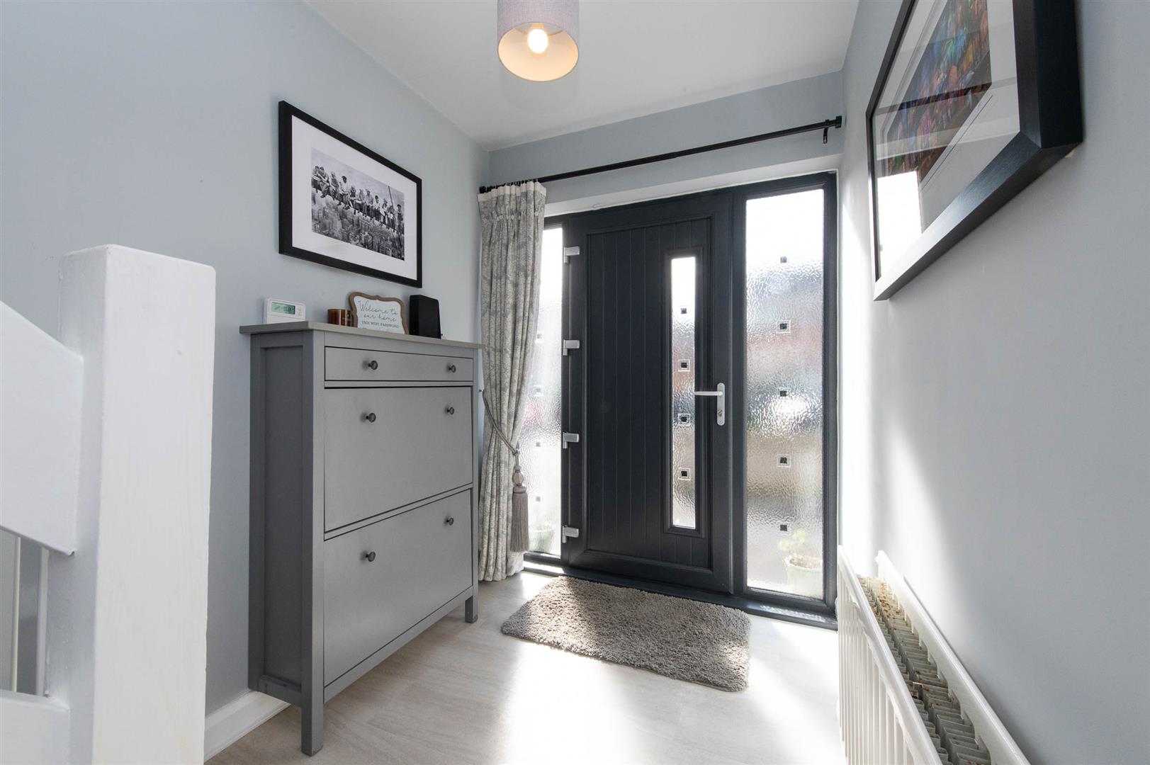 Laminate tiled flooring, uPVC front door, understairs storage, fitted alarm system