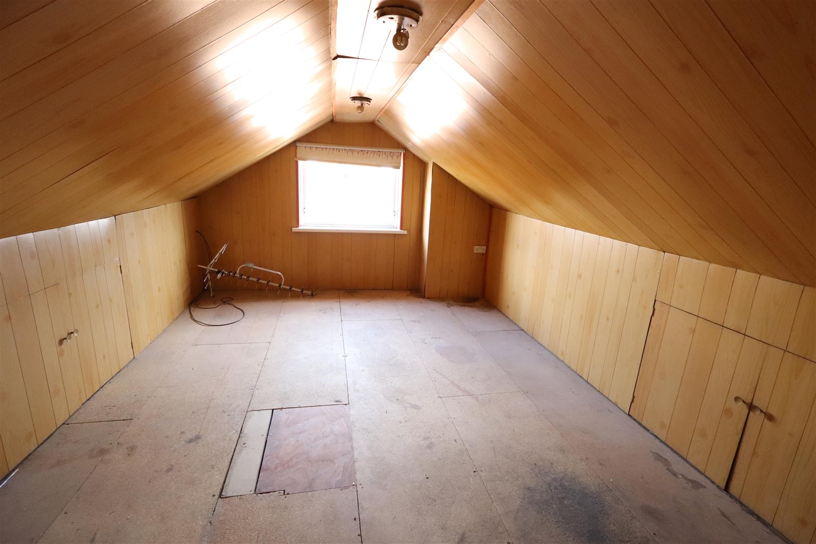 Access to floored roofspace with eave storage, panelled walls and ceiling (no building control or planning permission)