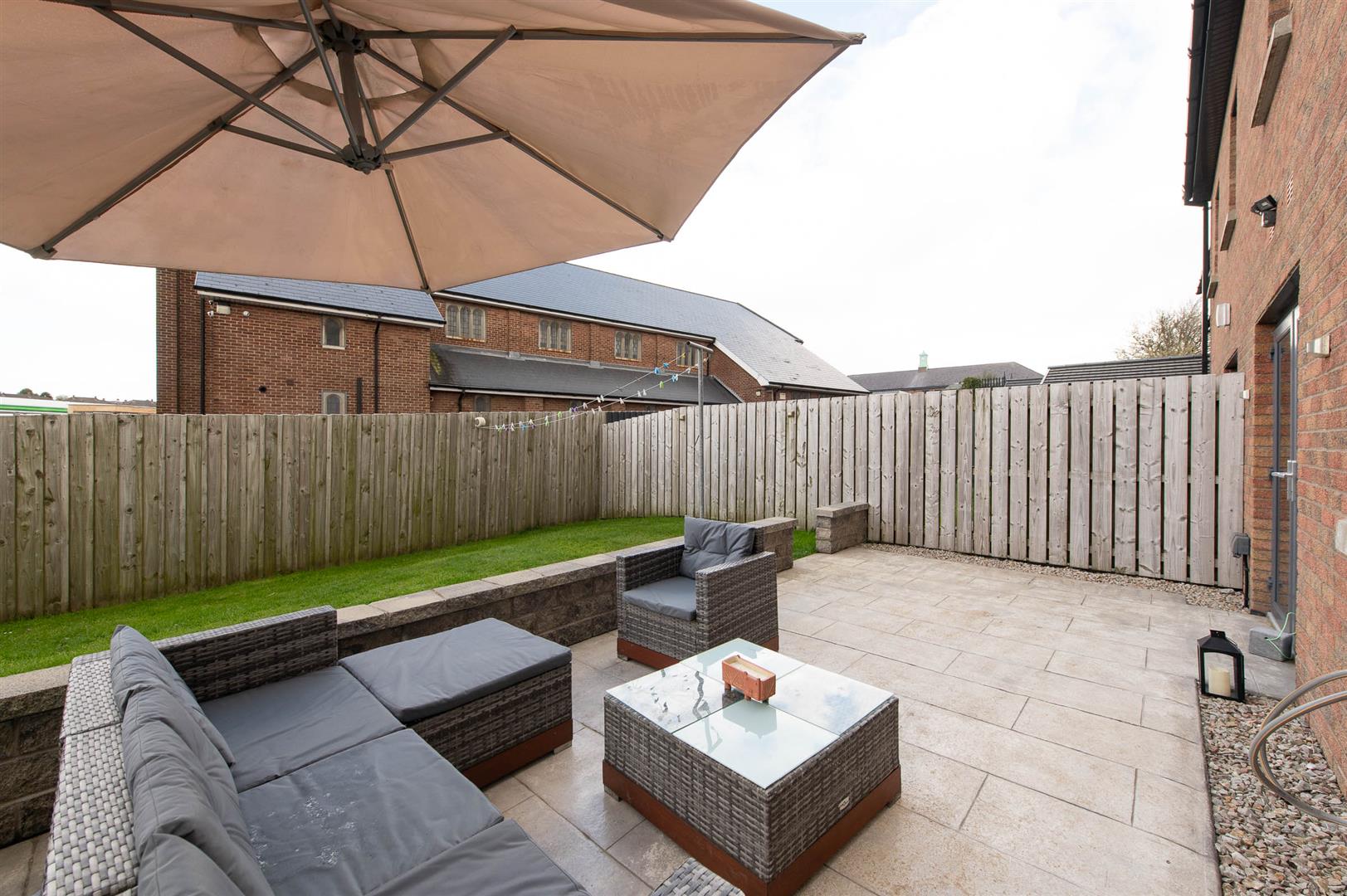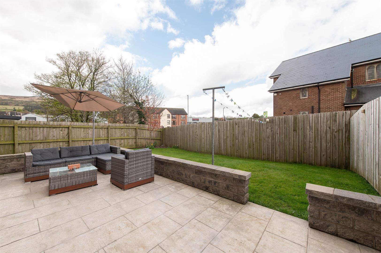 Rear: Enclosed garden to rear, feature patio area with unique concrete tiling, feature external mood lighting, external sockets, uPVC fascia and rainwater goods, outside tap, outside light, in stones