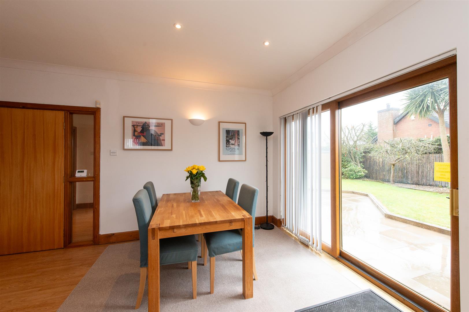 Casual dining area, laminate wood flooring, downlighters, patio doors to rear garden