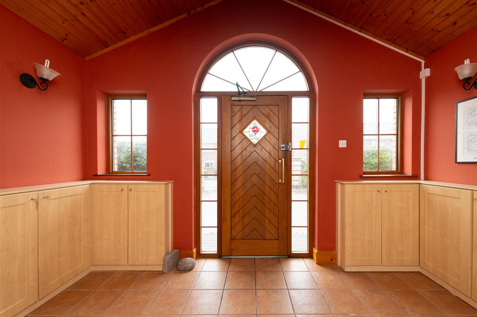 Ceramic tiled flooring, pine panelled ceiling