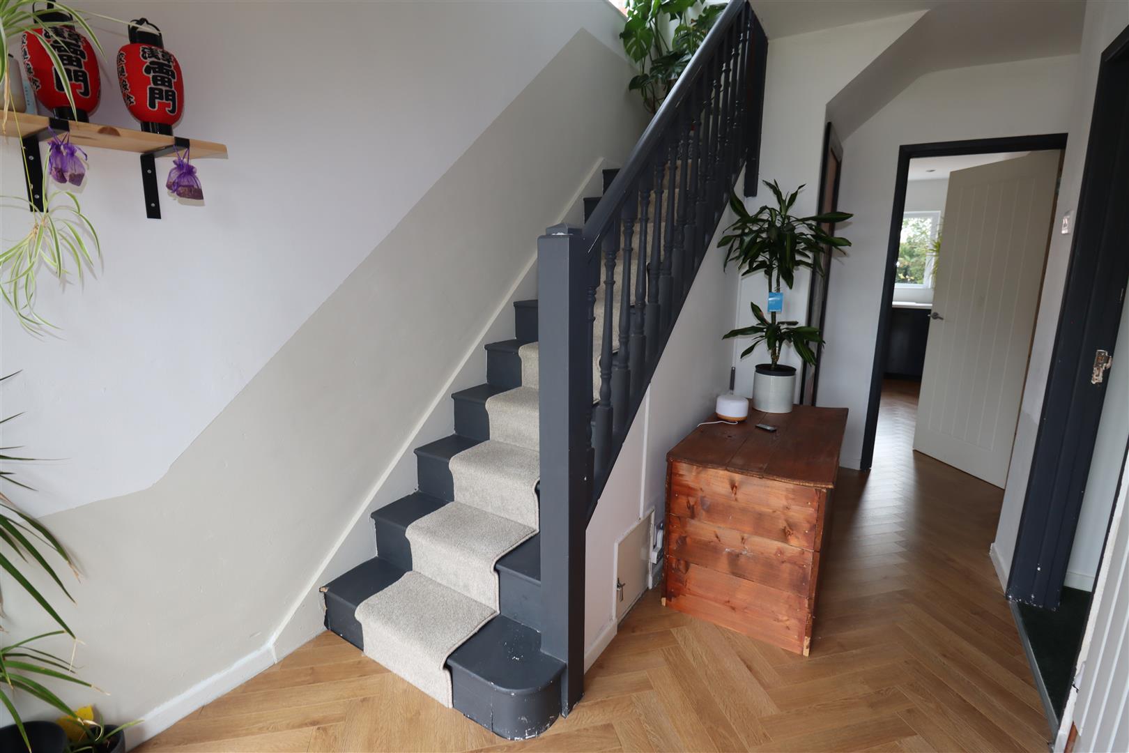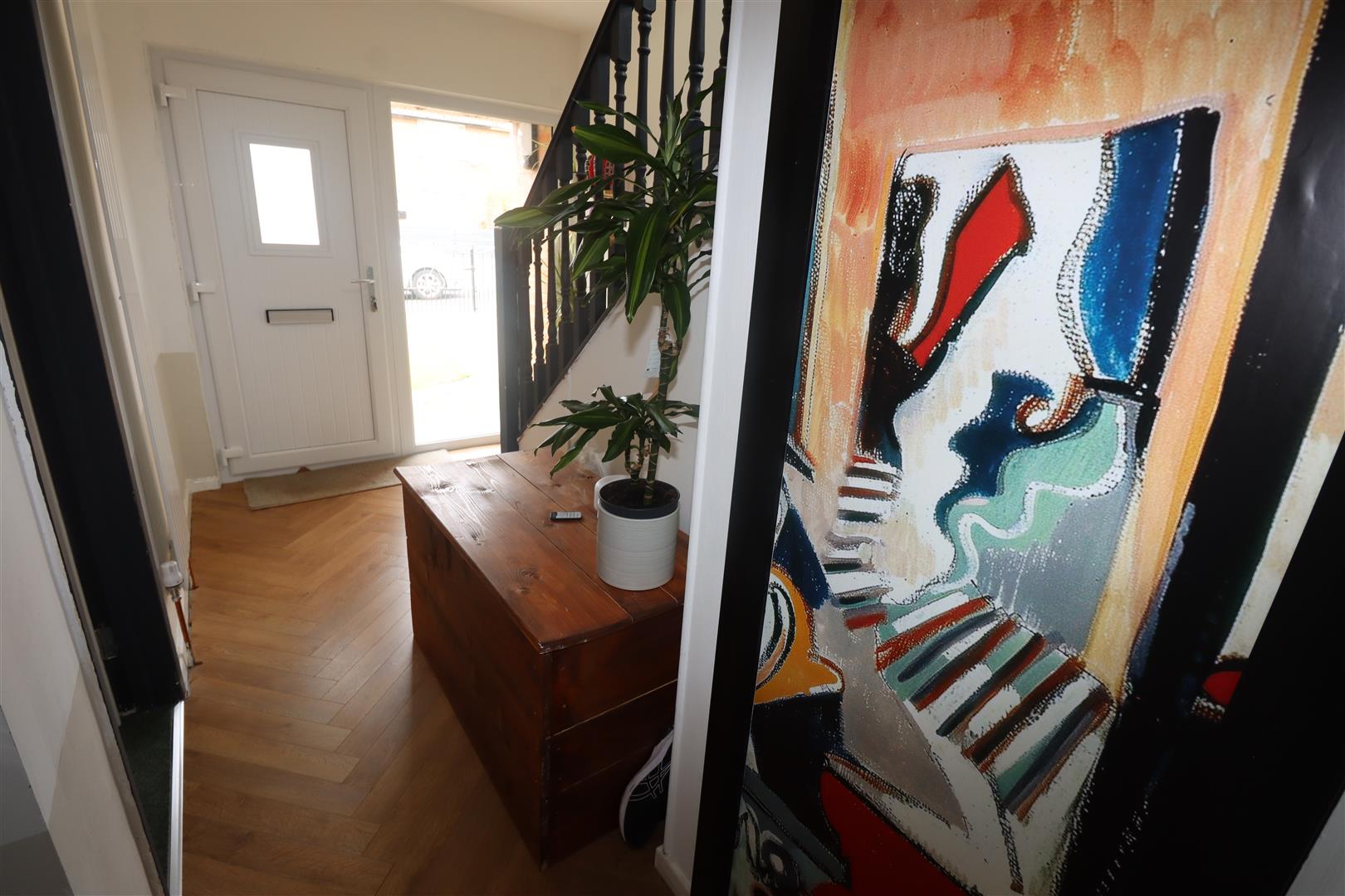 uPVC front door, vertical radiator, Herringbone laminate wooden flooring