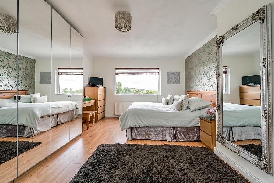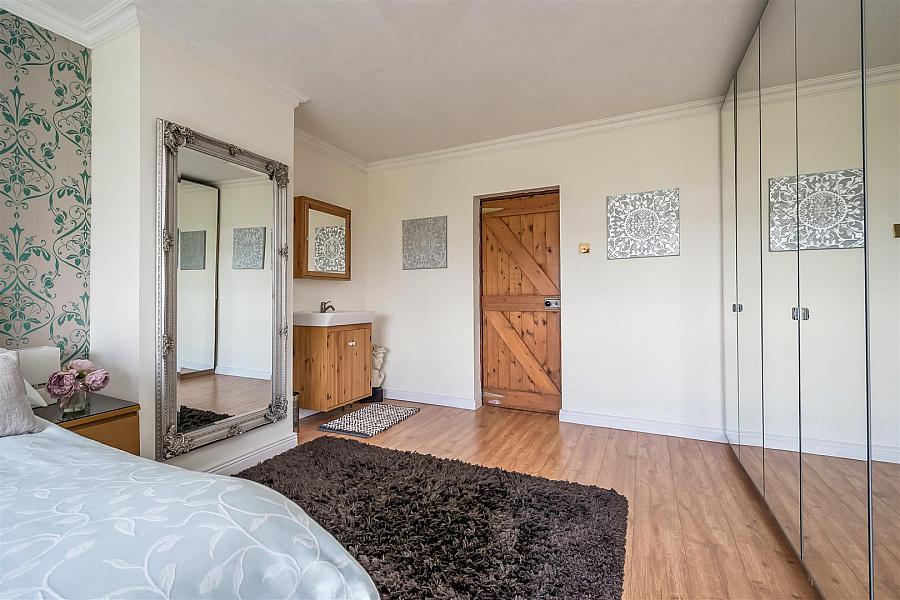 Dual aspect windows. Elevated rural views to rear. Vanity unit. Wood laminate floor covering.