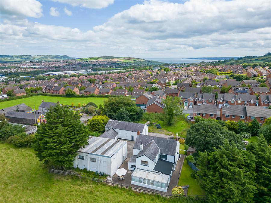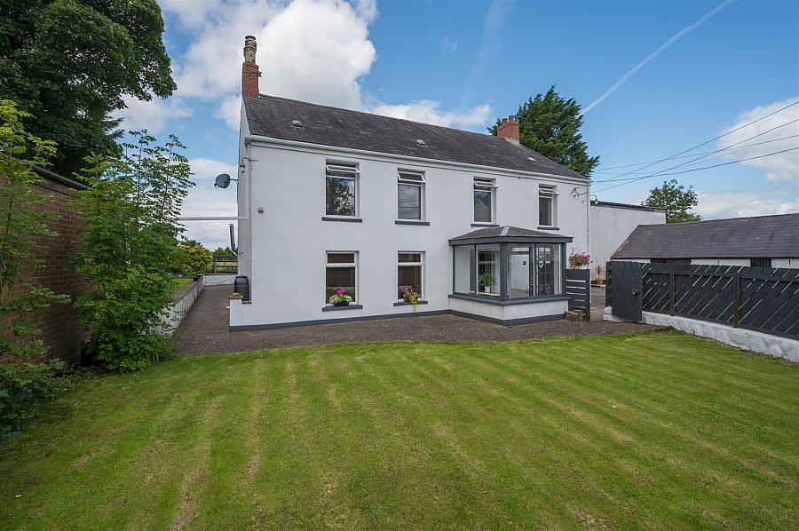 Generous sized, four bedroom, four+ reception, farmhouse style detached home with outbuildings, occupying a prime site off the Hydepark Road, Newtownabbey, enjoying delightful rural views to rear. The property comprises entrance porch, entrance hall, lounge, dining room, study, family room, conservatory, modern fitted kitchen, utility room and bathroom to ground floor level, with four double bedrooms and deluxe fully tiled bathroom found on first floor level. Externally the property enjoys a private courtyard/driveway area, large workshop and outbuildings, which are currently partitioned to provide a range of offices and store rooms (which may be suited for planning permission for further dwellings (subject to necessary checks and approval) with outline planning permission currently applied for). Other attributes include oil heating, double glazing (with four windows tinted and security laminated) and convenient location. Early viewing highly recommended.