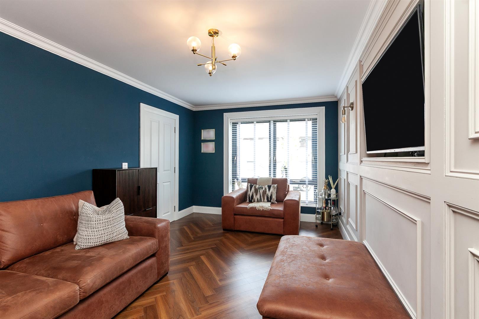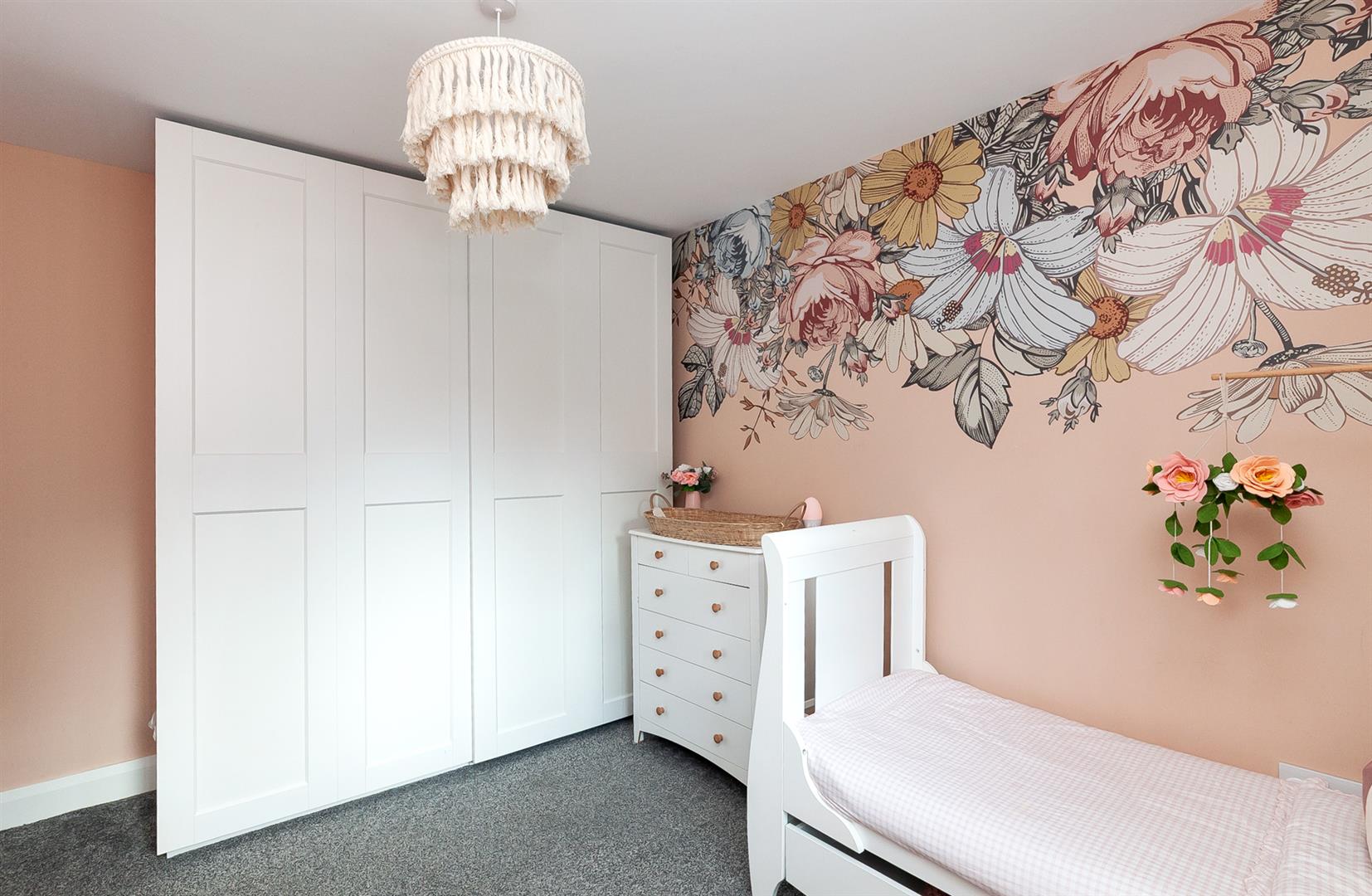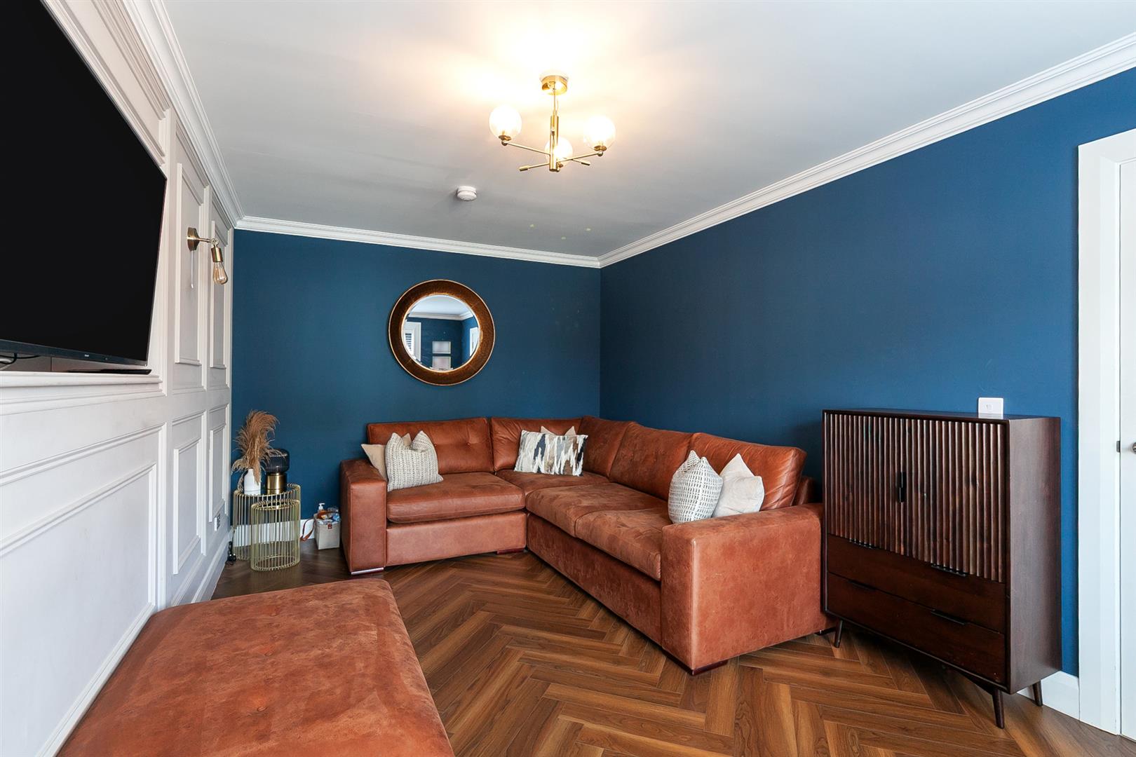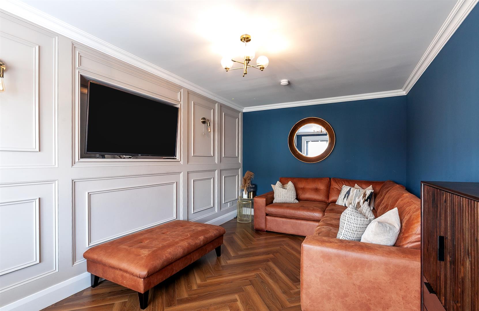 Panelled feature wall. Picture window to front elevation. Herringbone style wood laminate floor covering.