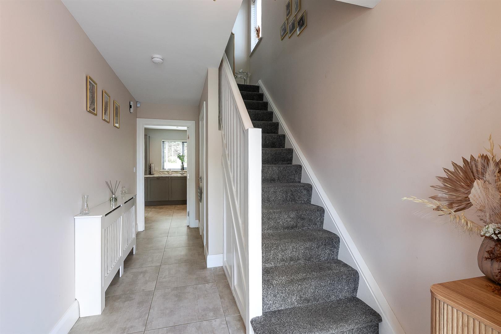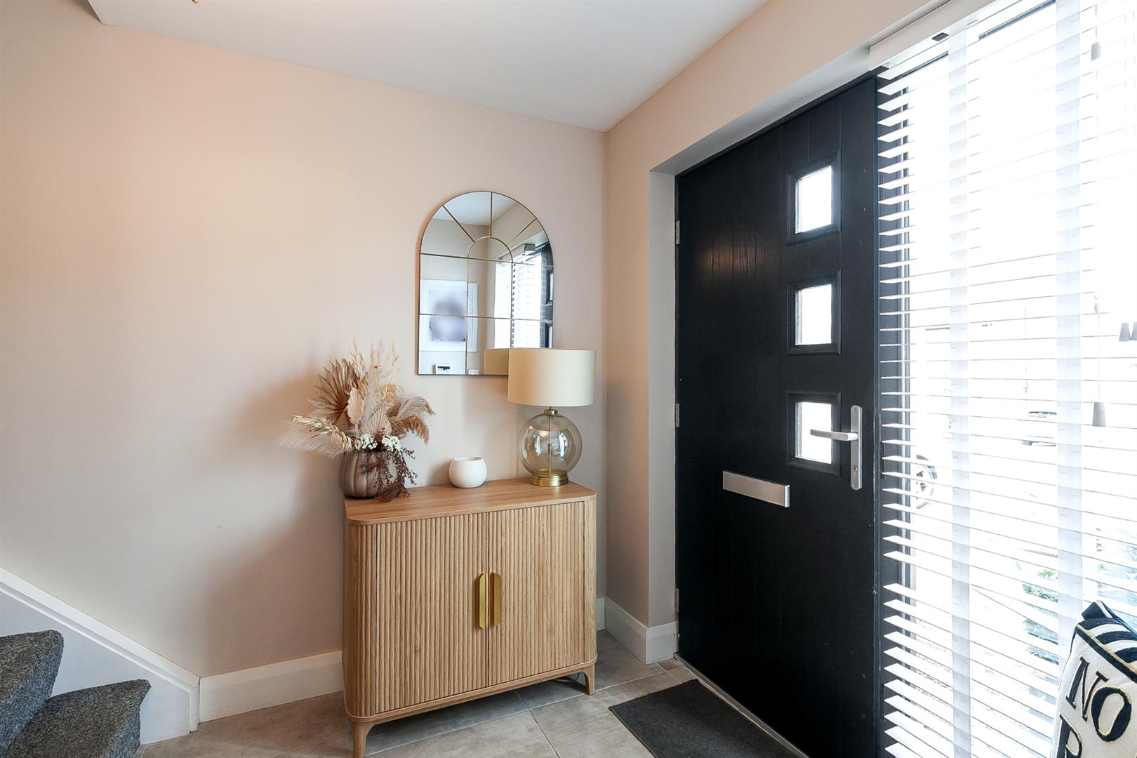 Composite, double glazed front door with PVC double glazed side screen. Tiled floor. Stairwell to first floor. Access to under stairs store.