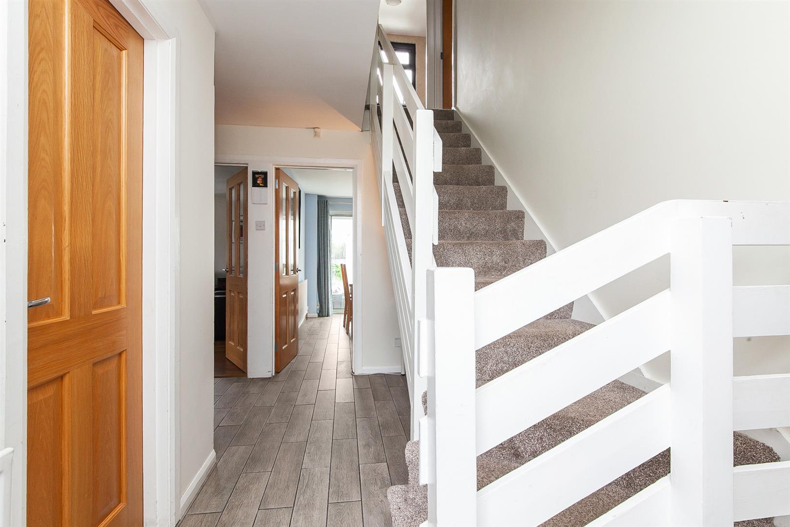 Composite, double glazed front door. Tiled floor. Stairwell to first floor. Glass panelled doors leading to lounge and kitchen. Access to cloakroom.
