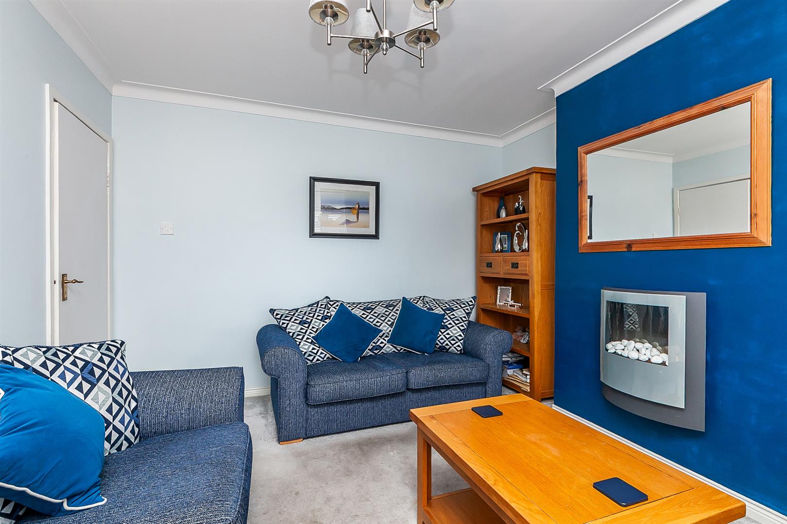 LOUNGE 12'5" X 11'5" (3.80m X 3.50m) Contemporary, wall mounted, electric focal point fireplace.